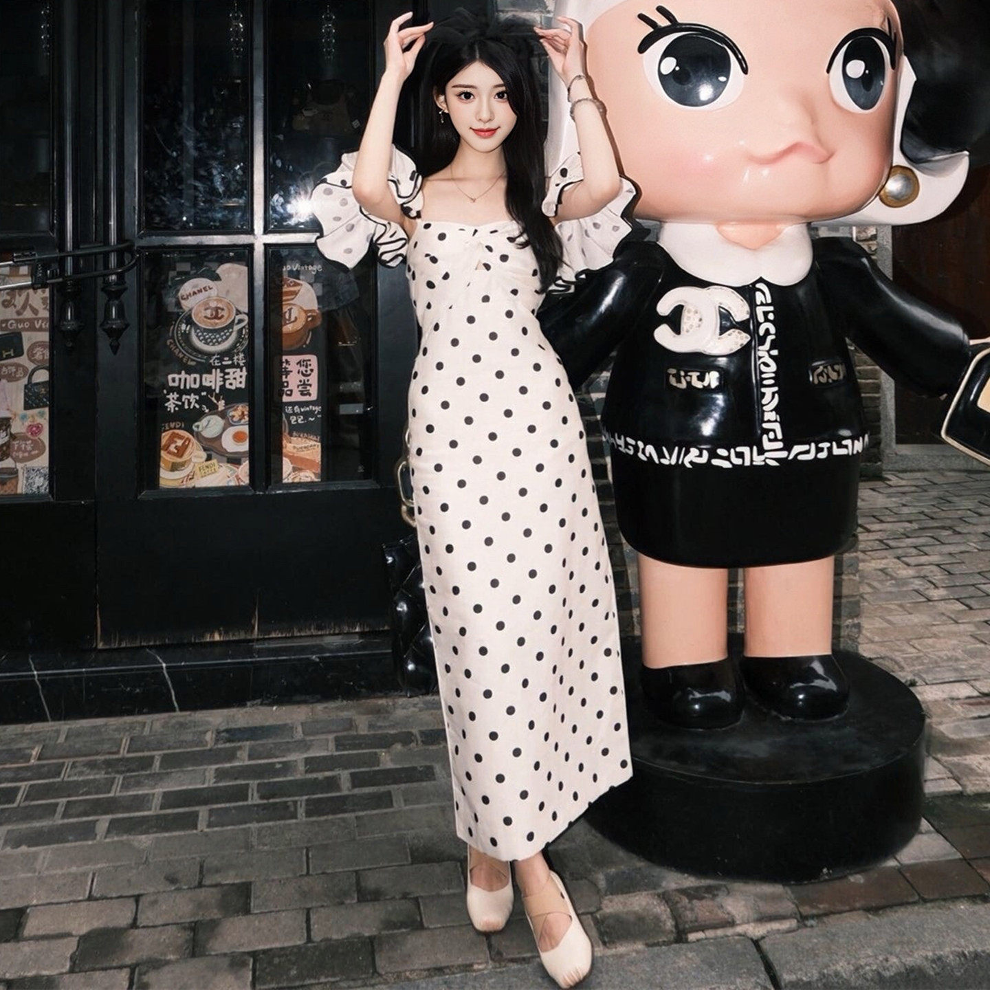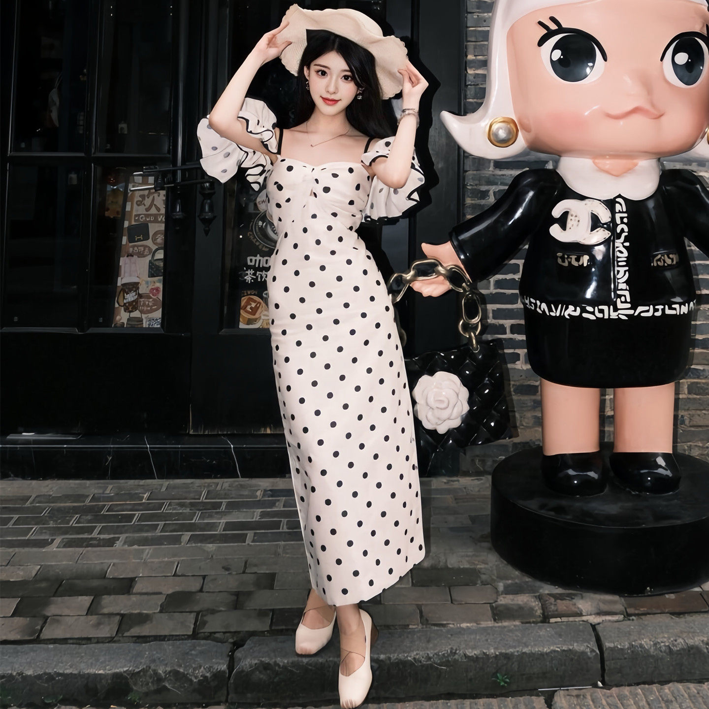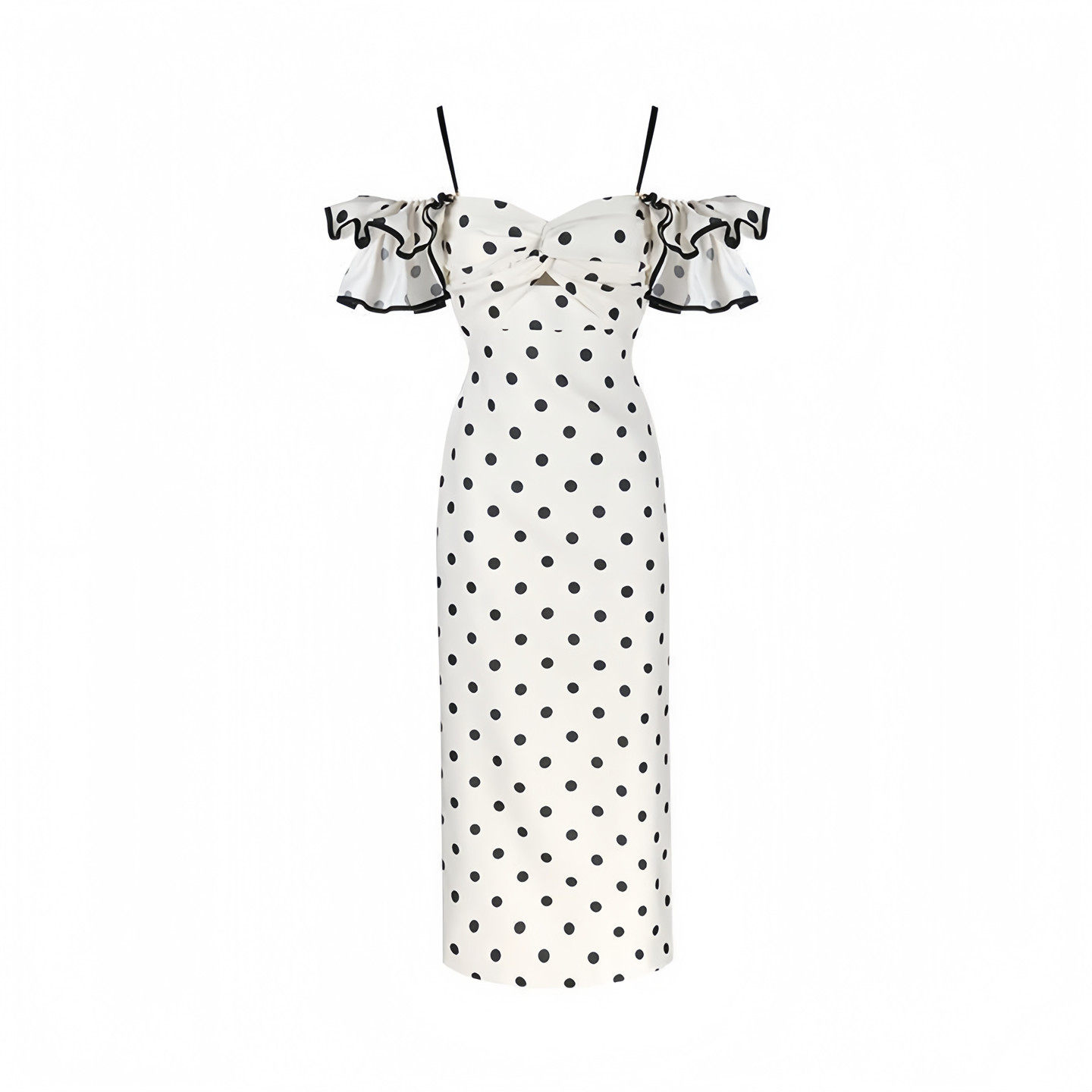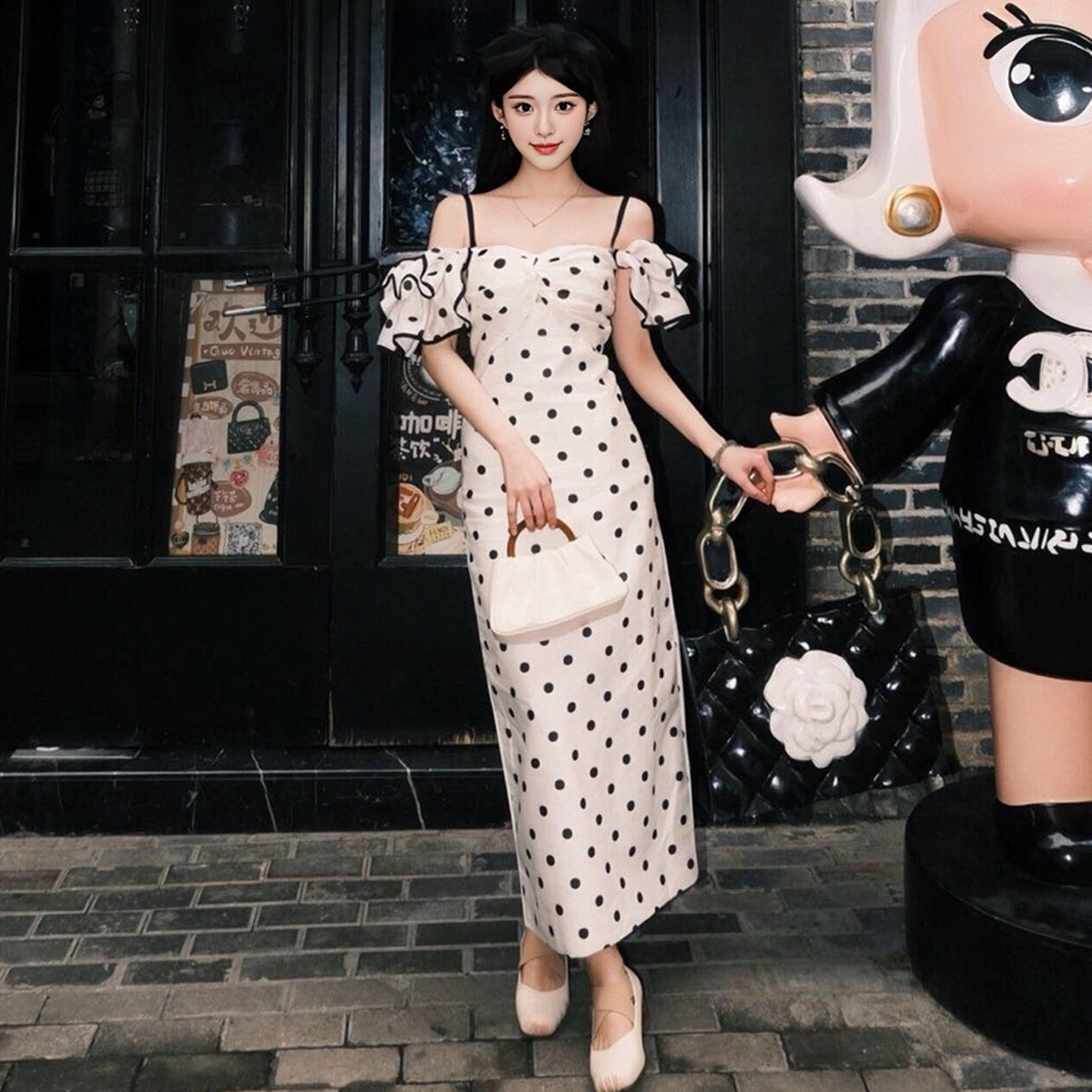 绝美长裙 巨好看法式 特别漂亮 一字肩波点吊带连衣裙女夏2026新款