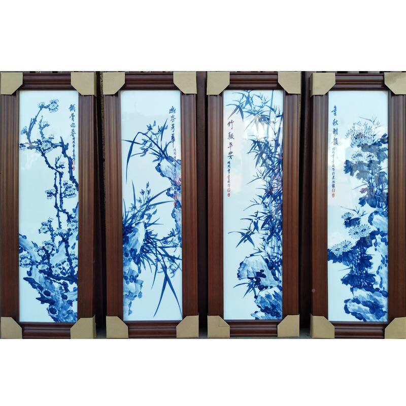 瓷板四条屏手绘青花兰竹梅画菊手工DDD面墙挂件