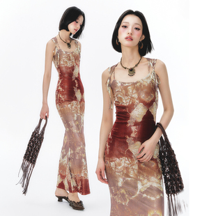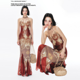 杨二大梦「烟染金荷 小众设计感系带吊带旗袍复古连衣裙 」新中式
