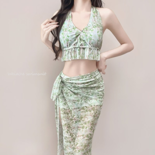 碎花温泉度假泳装 新款 纯欲ins分体泳衣女三件套性感显瘦遮肚韩版