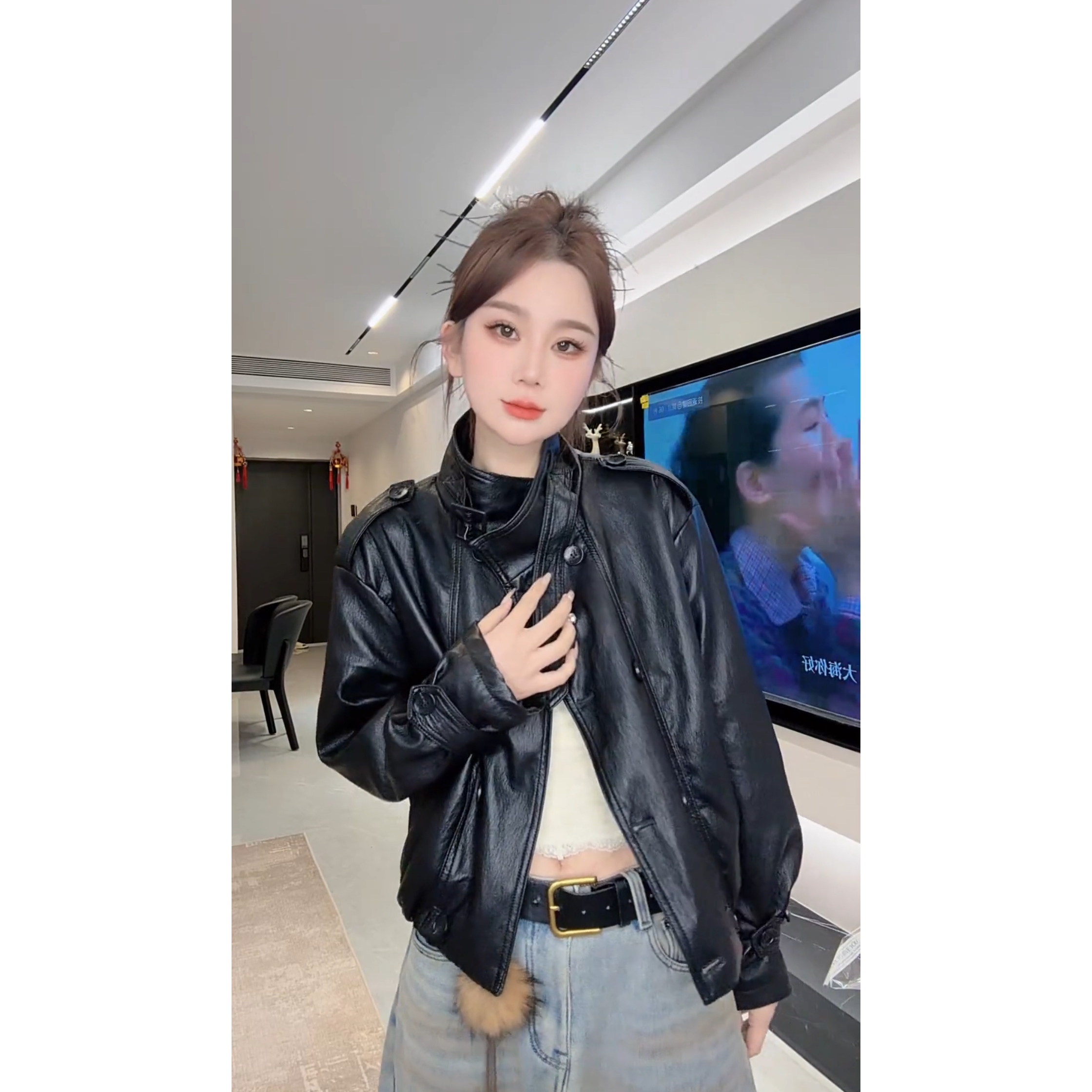 巨好看休闲酷帅美式 高级感小个子外套 复古黑色机车皮衣女2026春款