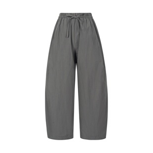 Seams 17197 Sense|休闲日系松紧腰抽绳条纹色织宽松九分气球裤