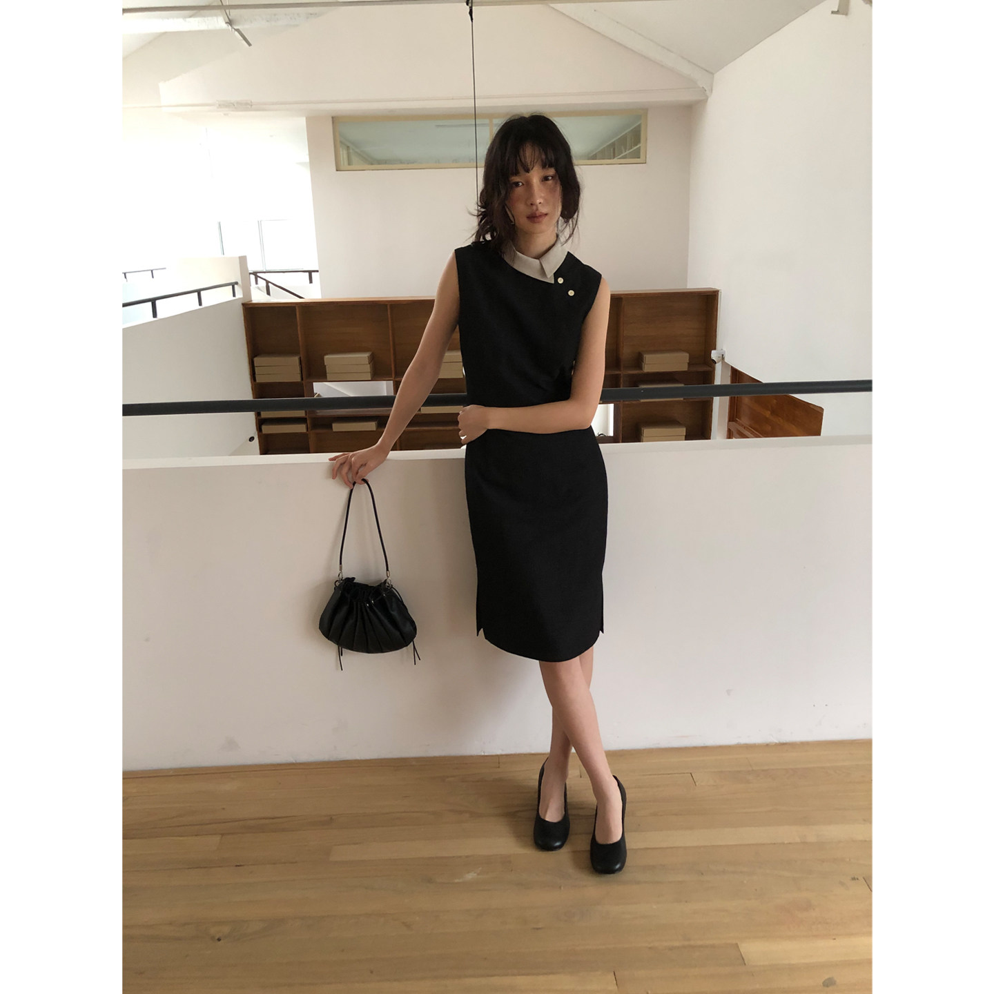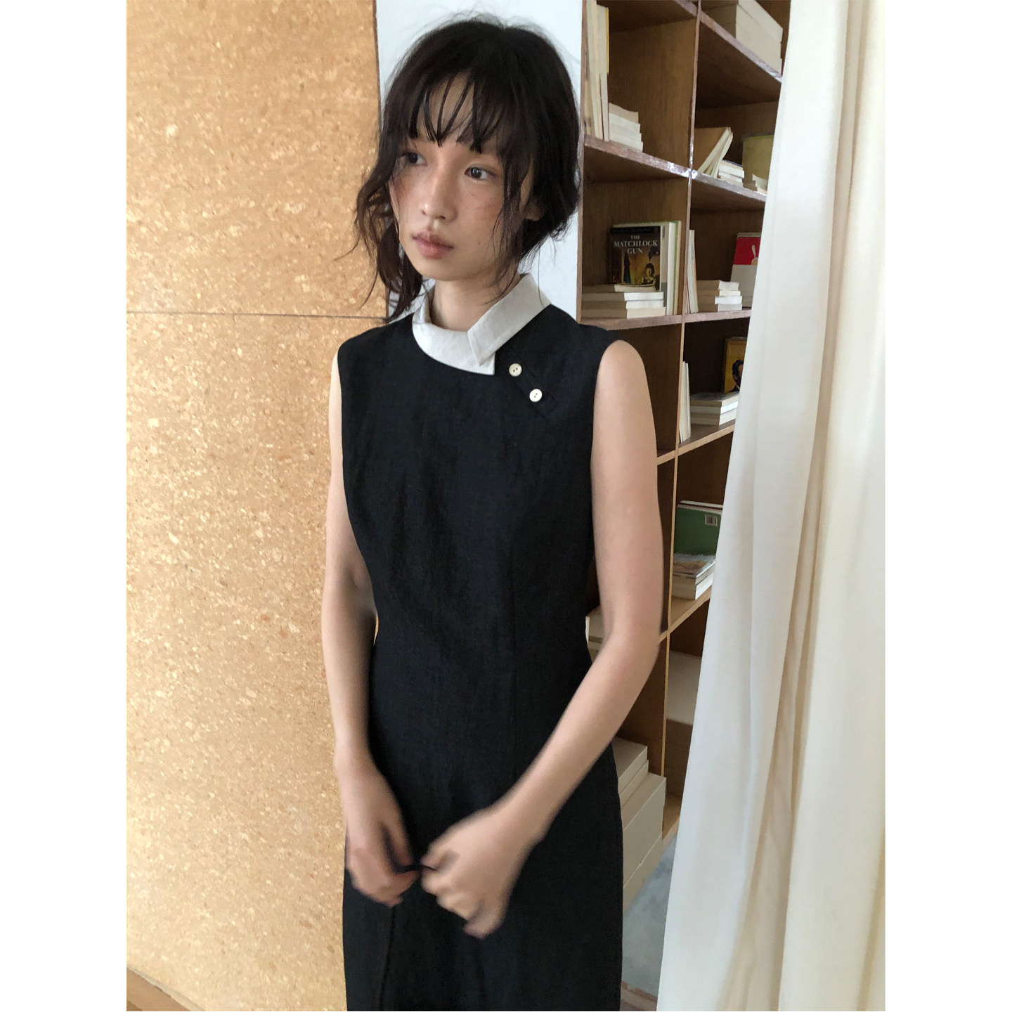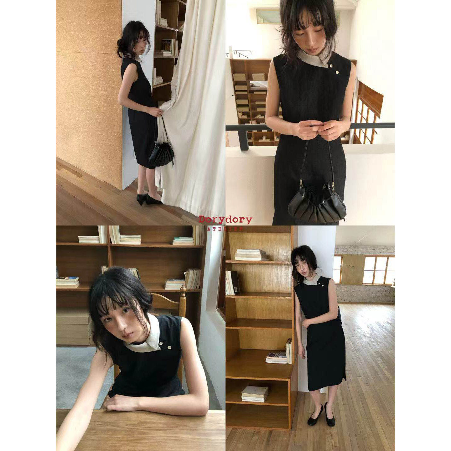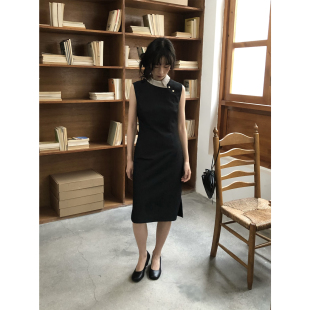 dorydory撞色小翻领旗袍连衣裙2026早春新款 显瘦气质裙子 复古修身