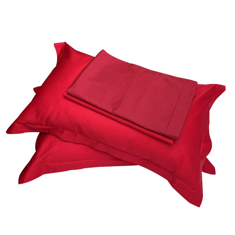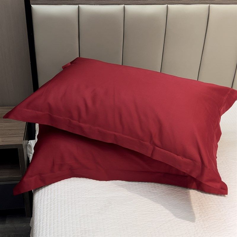 100支长绒棉枕套纯色酒红大红结婚单人枕头皮婚庆铺床48 74一对