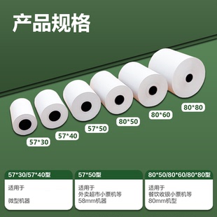 热敏打印纸57x50收银纸80x80美团外卖超市小票纸57x40x30外卖收银机通用80x60x50银行排队票据58mm后厨房卷纸