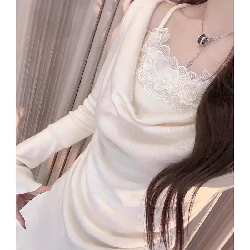韩系蕾丝花朵气质连衣裙2025秋冬新款 甜辣打底内搭长裙子D4230