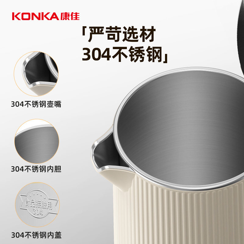 康佳电水壶304不锈钢1.8L家用烧水壶开水壶