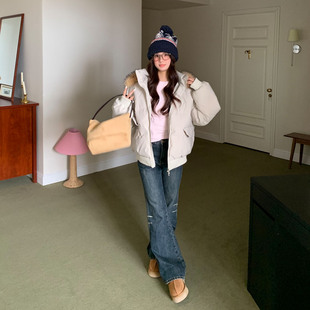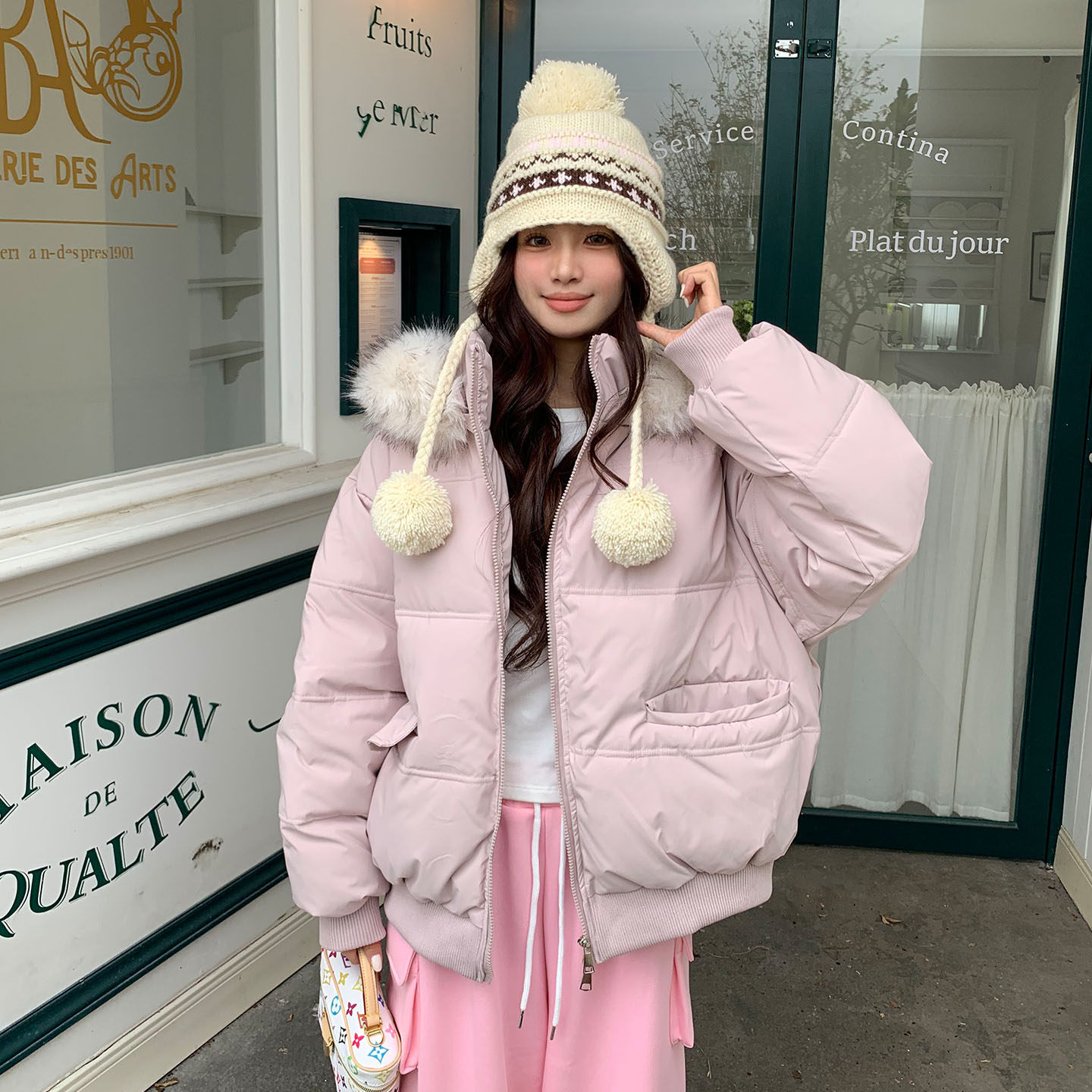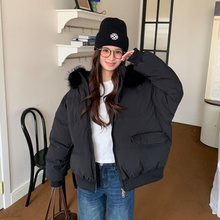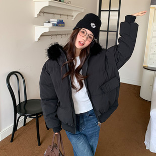 橘子树在哪儿白色大毛领连帽派克外套女冬季 加厚保暖宽松棉衣棉服