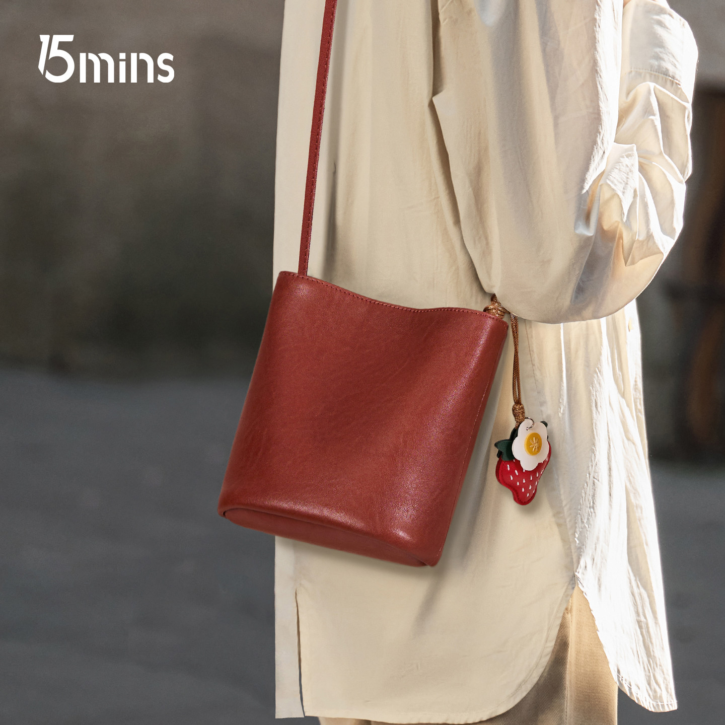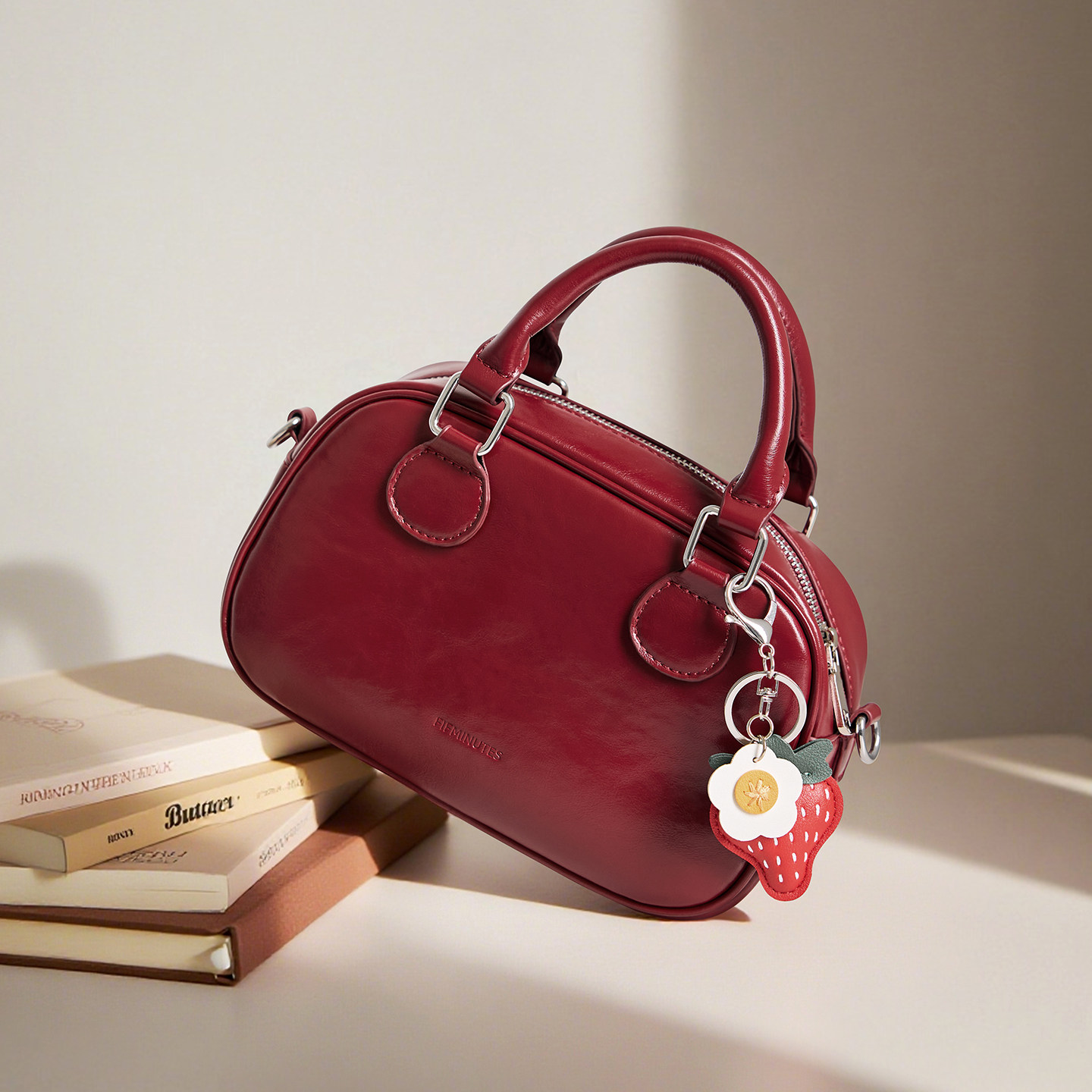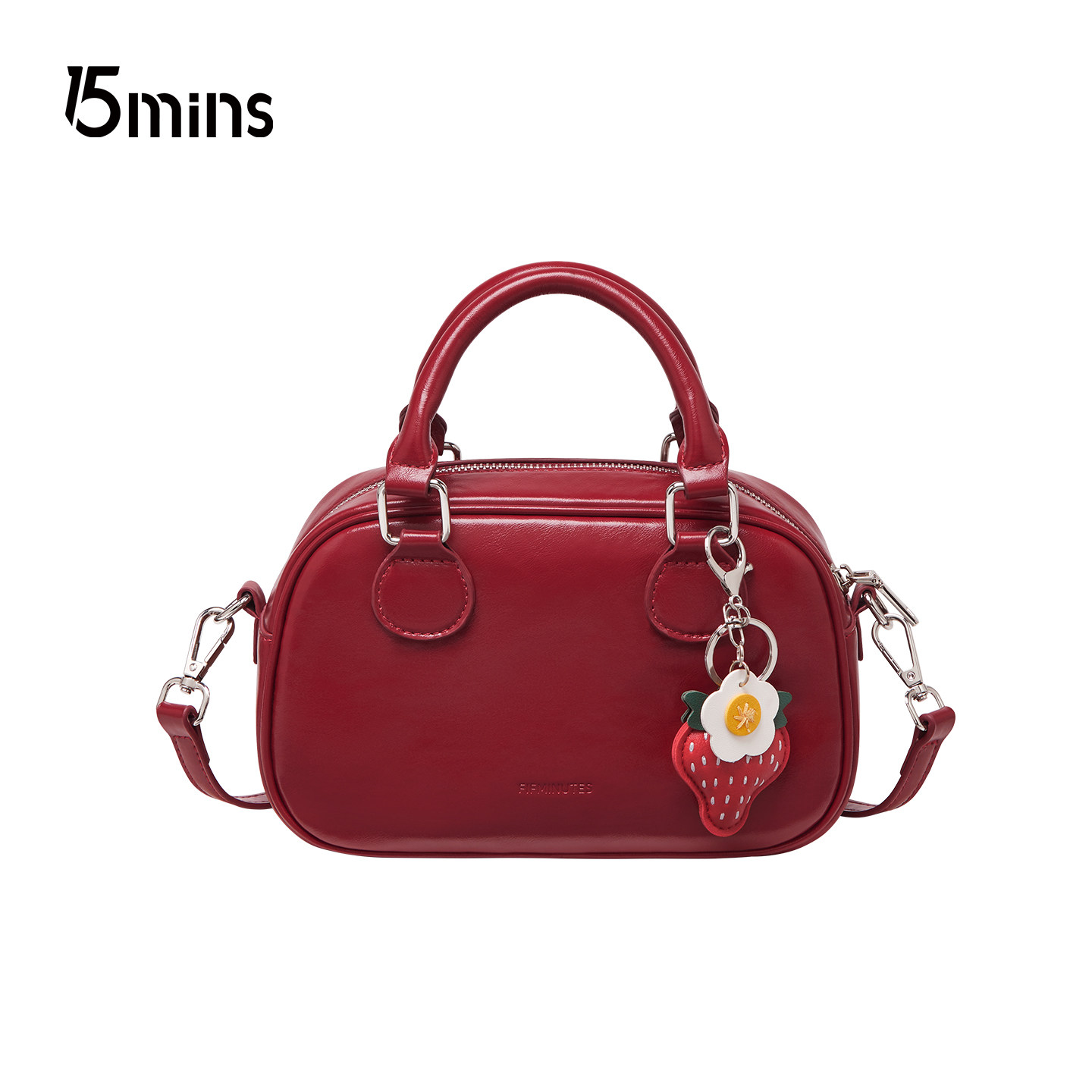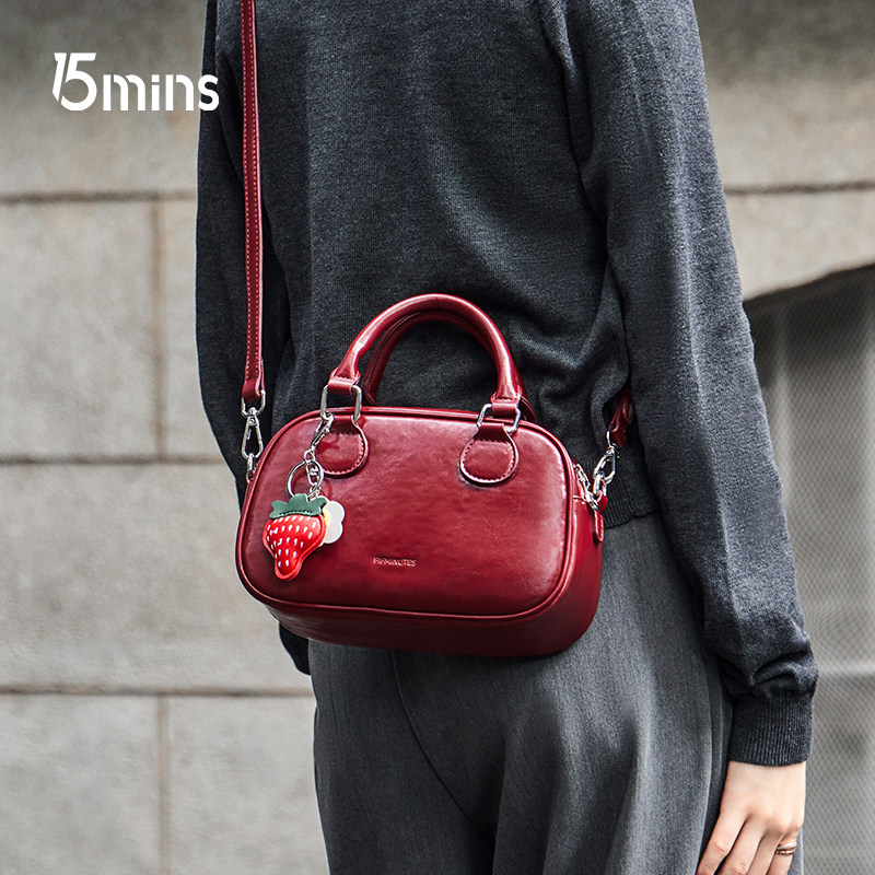 15MINS红色包包2025新款 百搭保龄球包手提斜挎包通勤新年女包 时尚