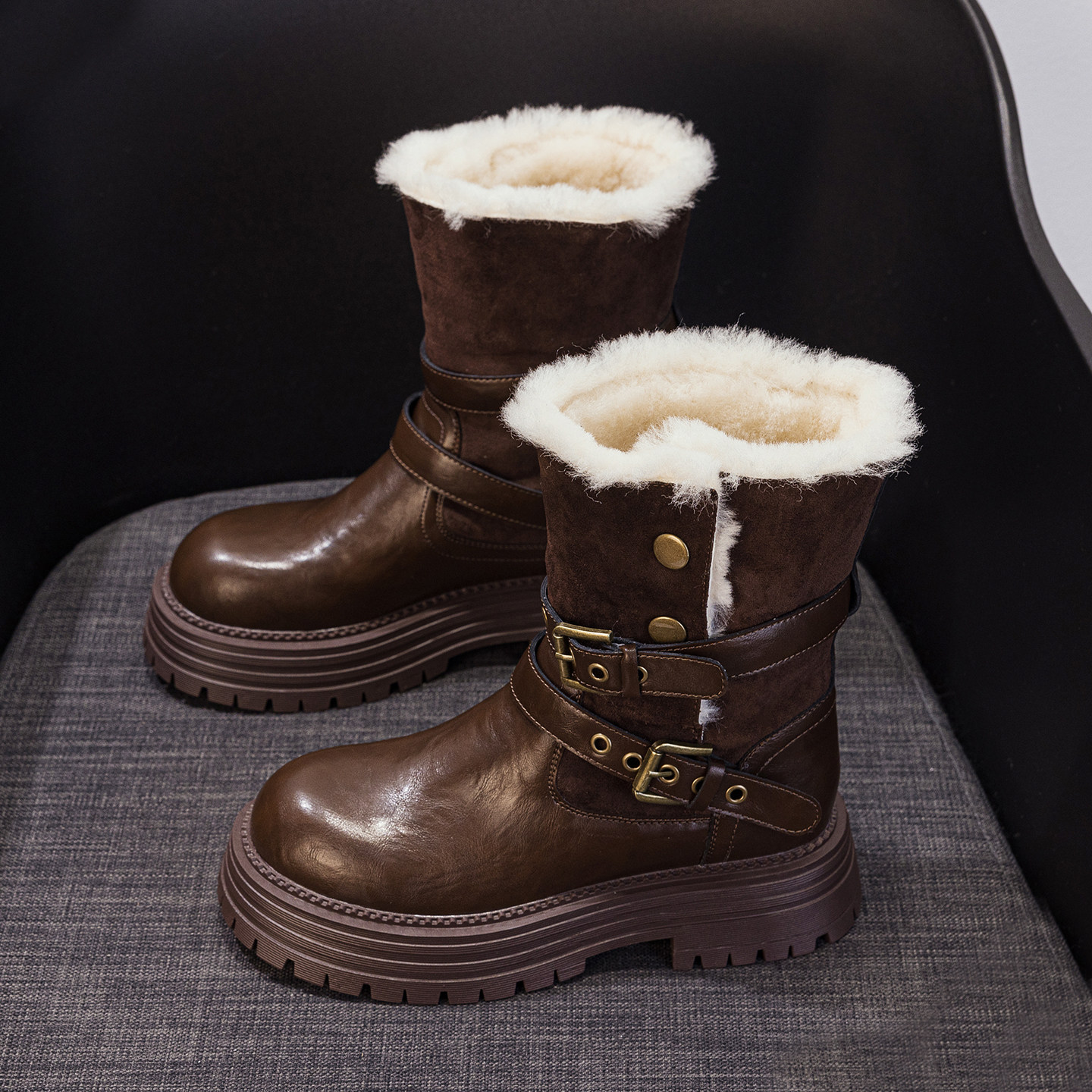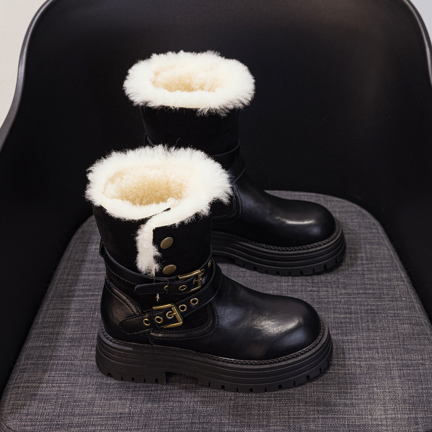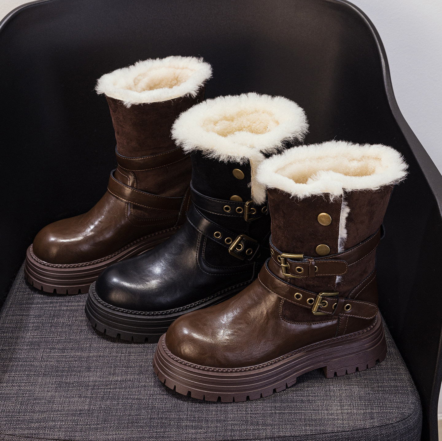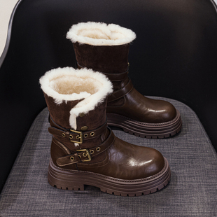 冬季 厚底保暖马丁靴瘦瘦中筒靴 真皮加绒加厚防水雪地靴女2025新款