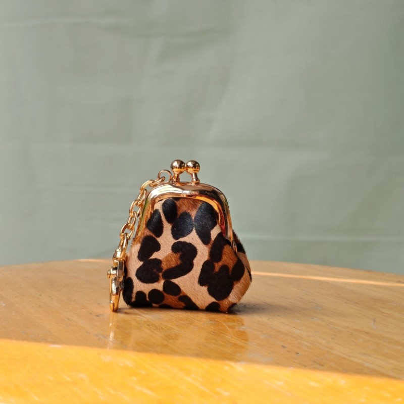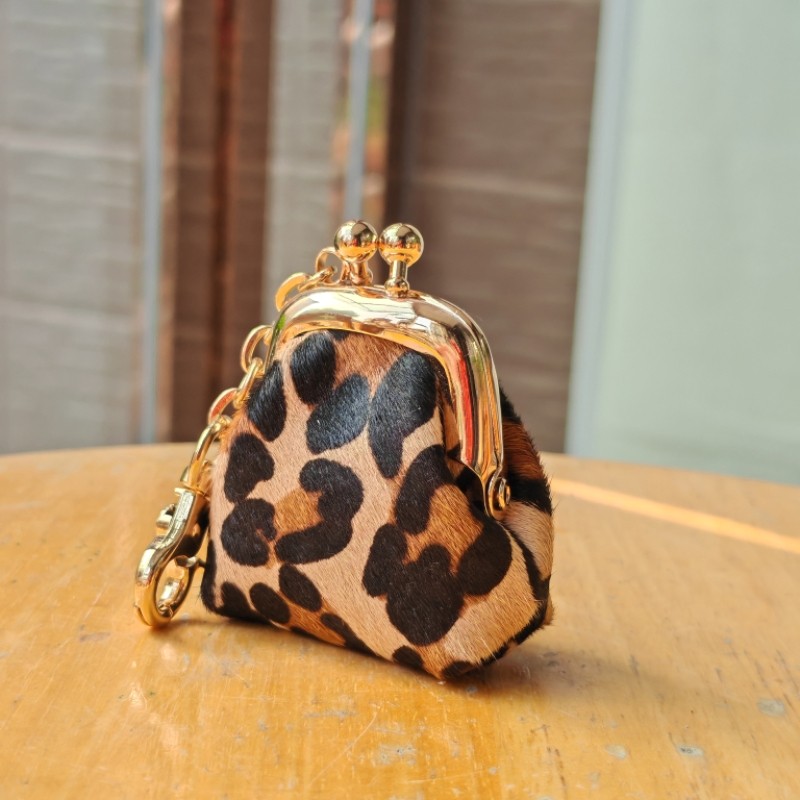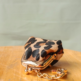 头层牛皮豹纹迷你小包包硬币钢镚儿小首饰收纳小包口金包链条女包
