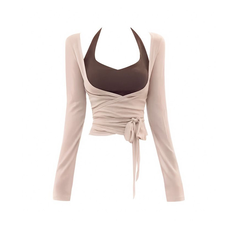 显瘦高级感短款 时尚 上衣 两件套女秋季 辣妹风挂脖吊带背心绑带开衫