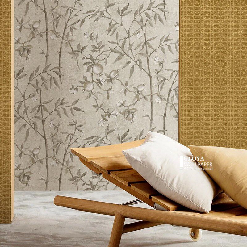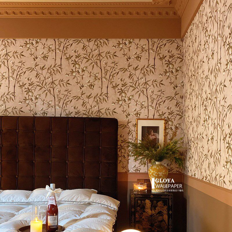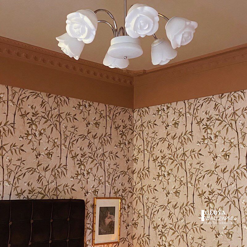 卧室电视背景墙纸壁纸 新中式 中古风极繁风壁画 石榴树美式 现货