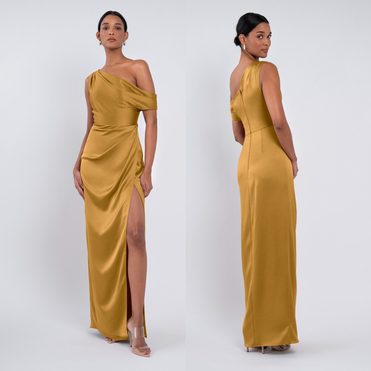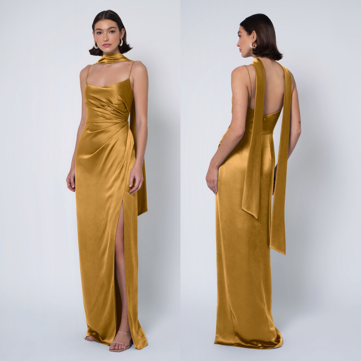 Marigold绝美气质缎面伴娘服姐妹团礼服小众高级感伴娘服定制