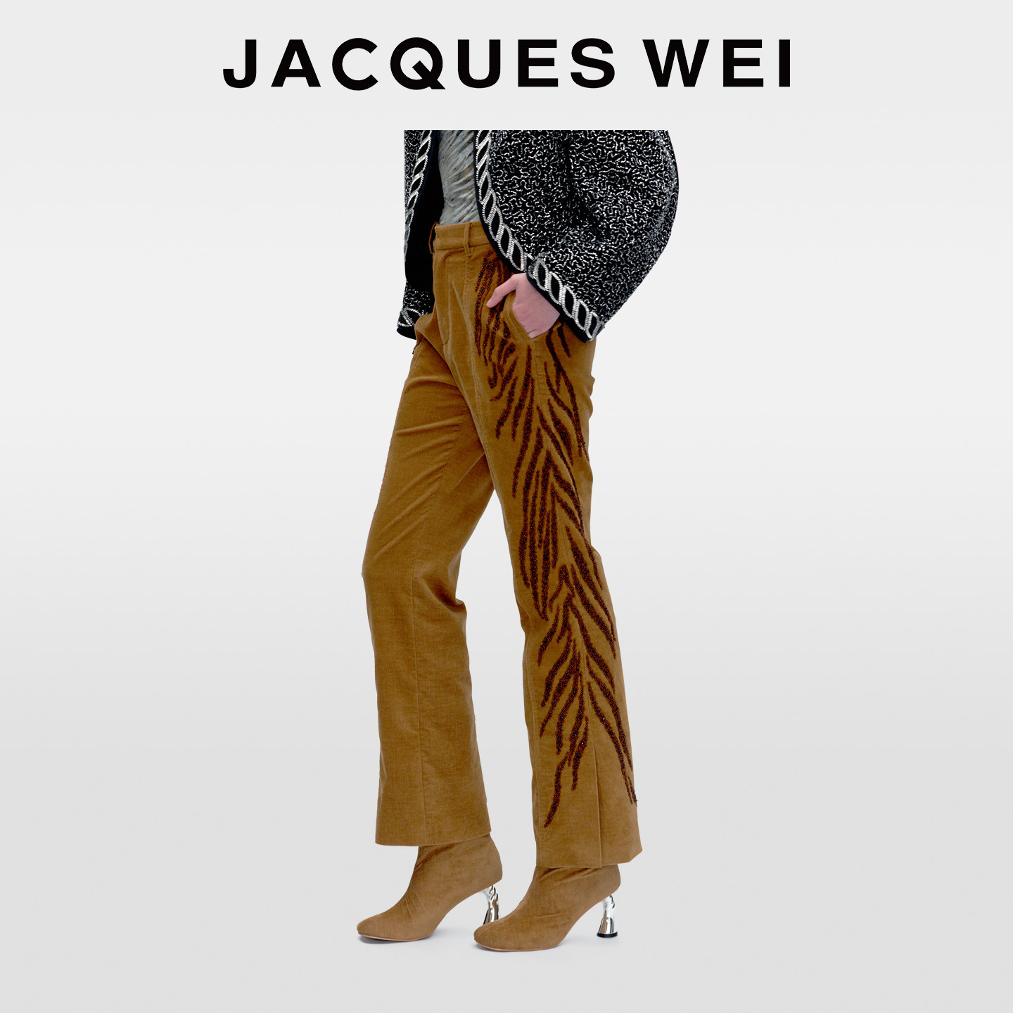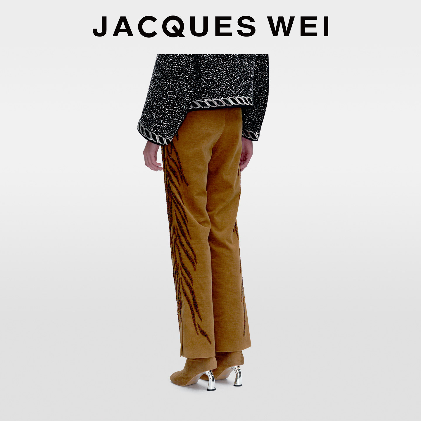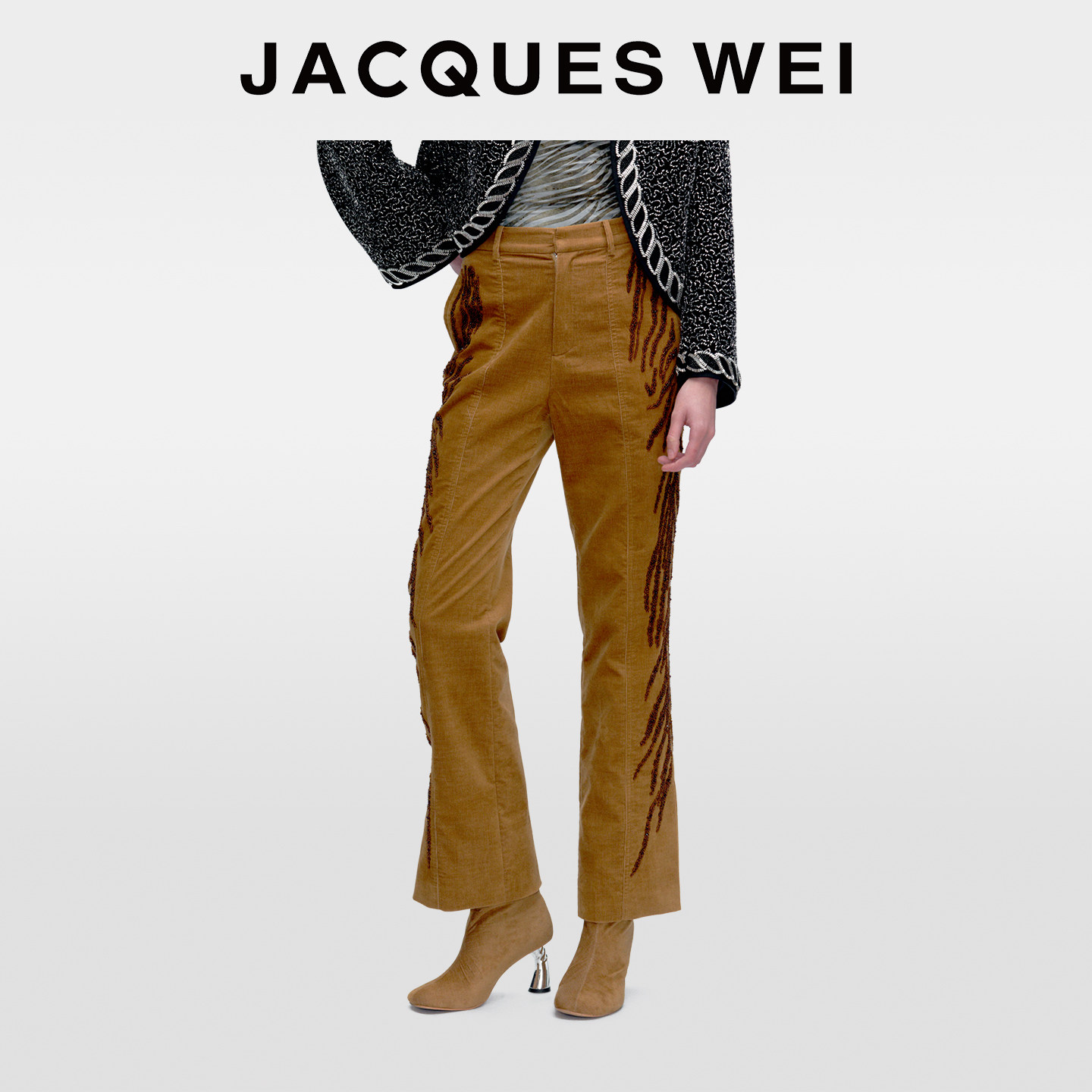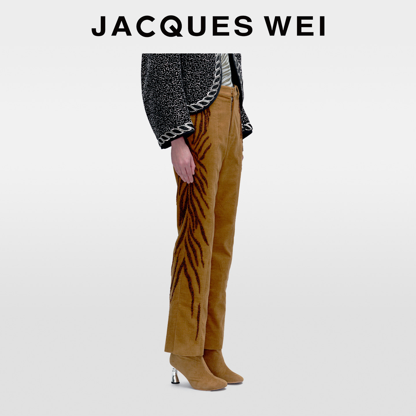 子女2025新款 JACQUES WEI秋冬黄棕色手工刺绣斑马纹显瘦灯芯绒裤