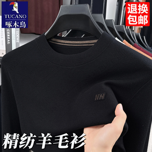 啄木鸟半高领毛衣男加绒加厚纯色宽松冬季 男 一体绒保暖针织打底衫