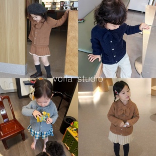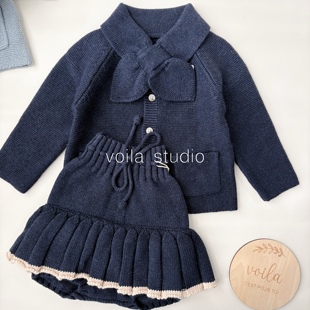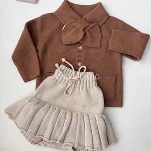 英伦风ins宝宝毛衣开衫 纯色复古针织外套羊绒棉春秋冬儿童MP领结
