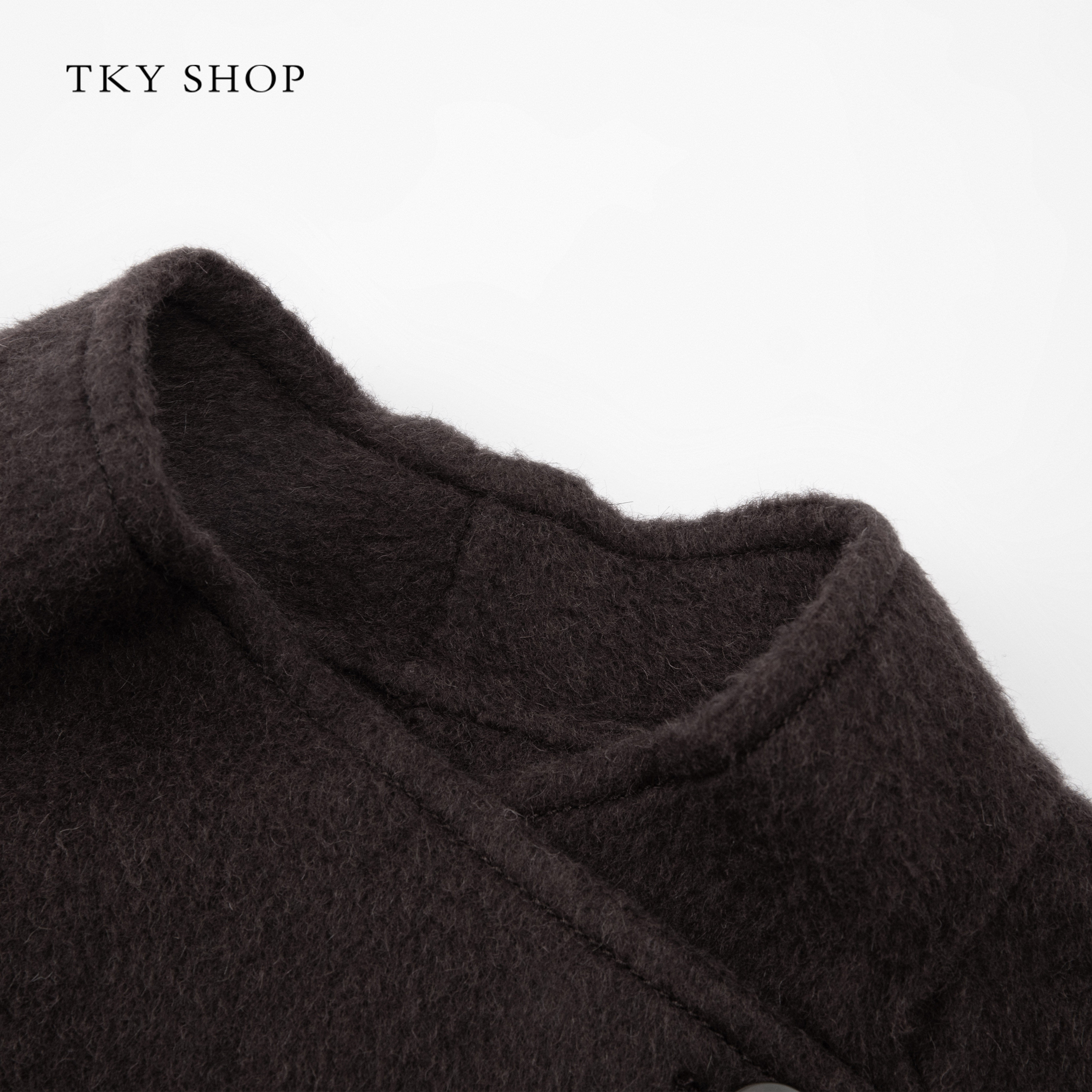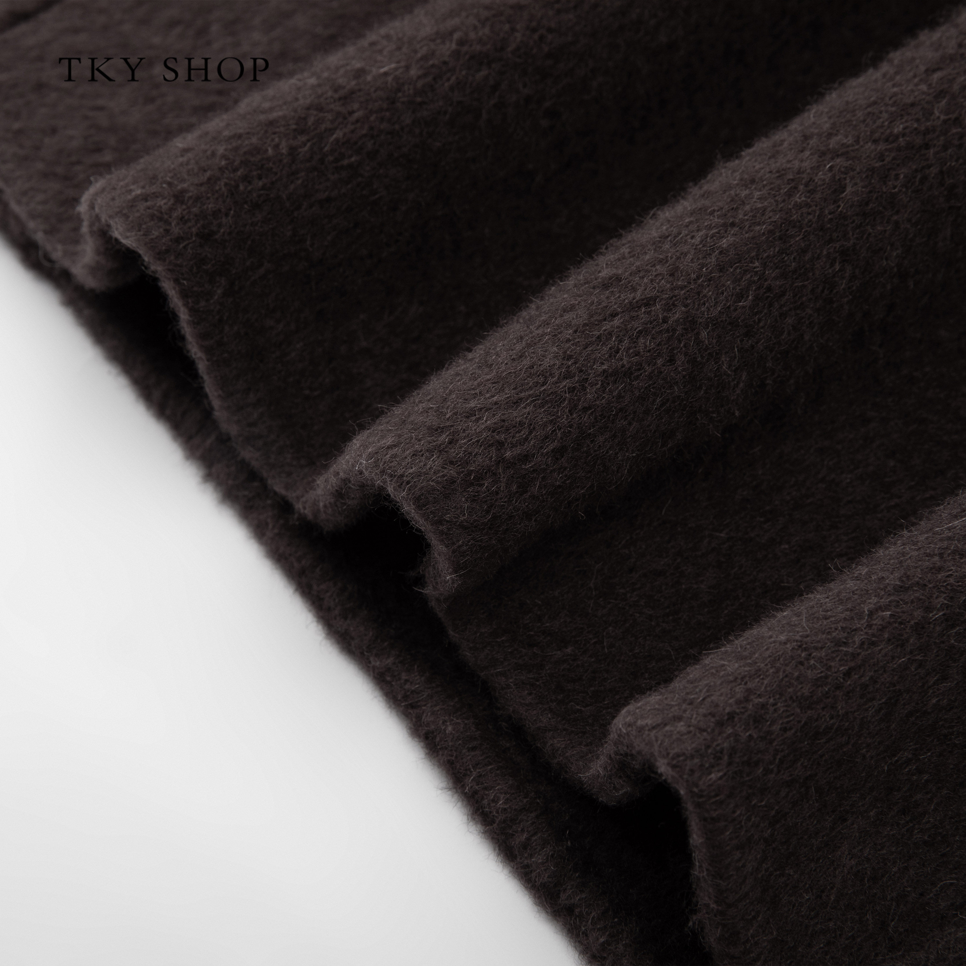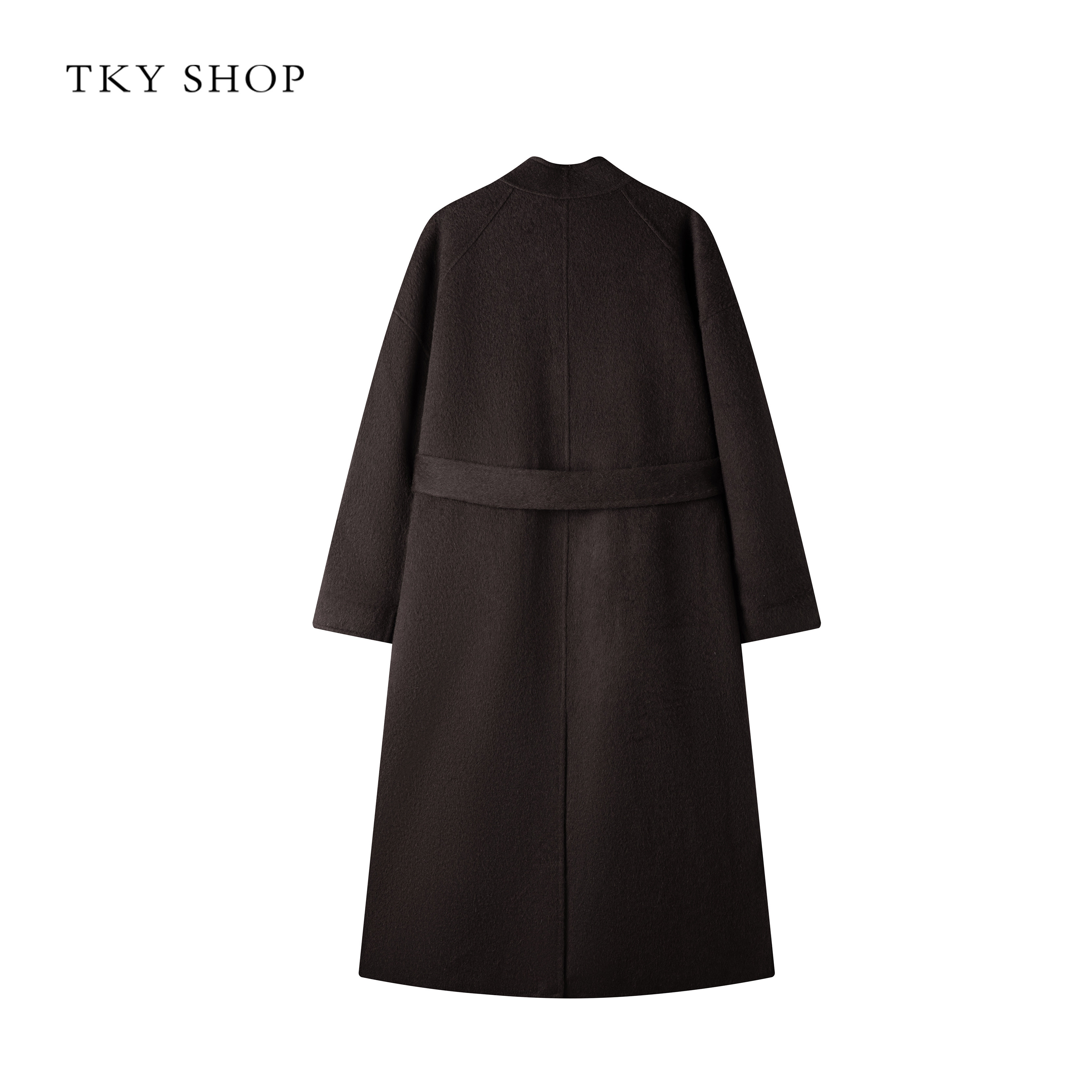 收腰系带骆驼绒毛呢外套 中长款 TKY SHOP双面呢羊毛大衣2025冬新款