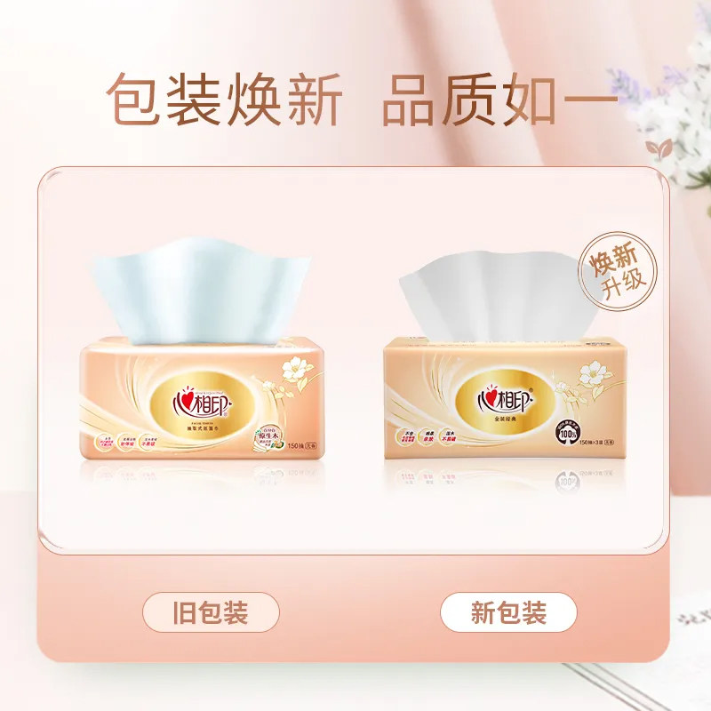 心相印纸巾抽纸家用擦手纸加厚可湿水实惠装 卫生纸390张大包尺寸