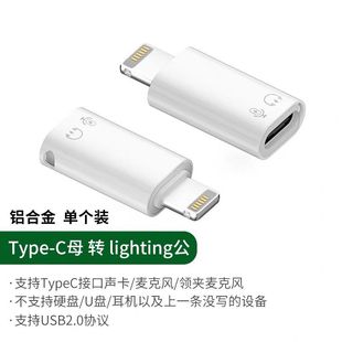 适用苹果手机lighting转Typec有线耳机转接头充电听歌通话无线领夹麦OTG转换头苹果ipad笔记本华为小米VIVO
