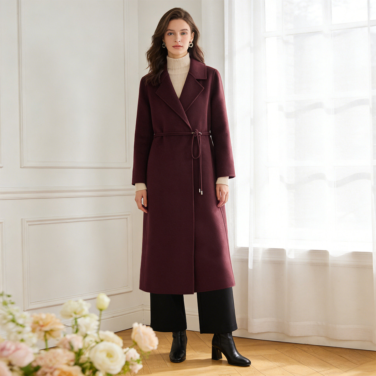 暗扣系腰带西装 西湖阁老 绍 冬装 领双面呢长毛大衣856 妃