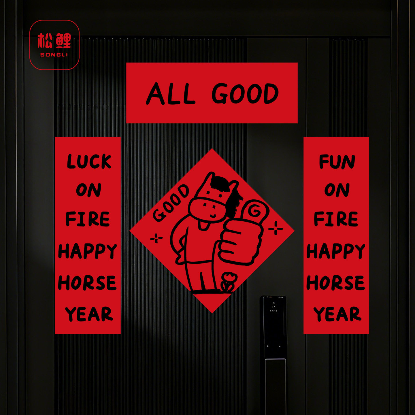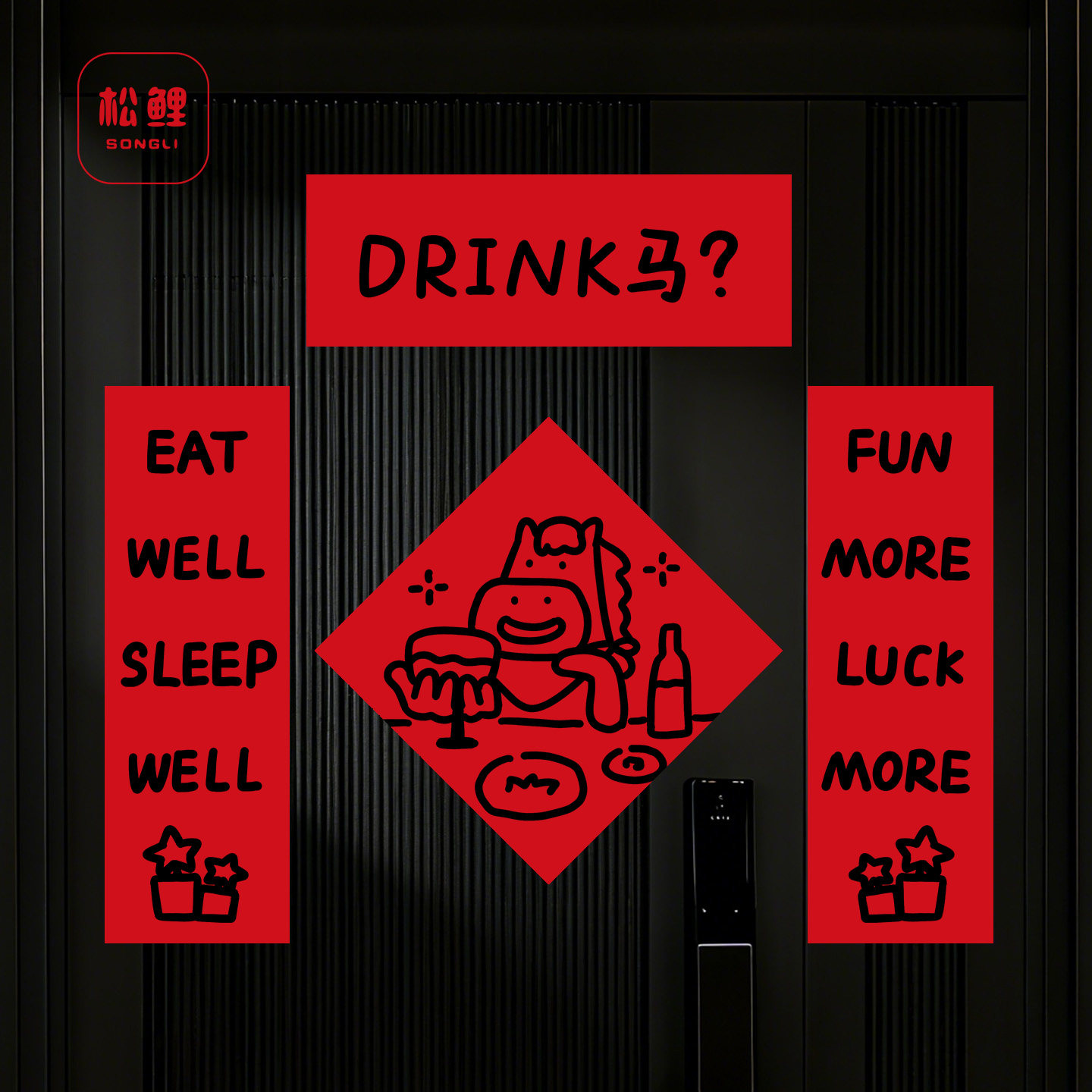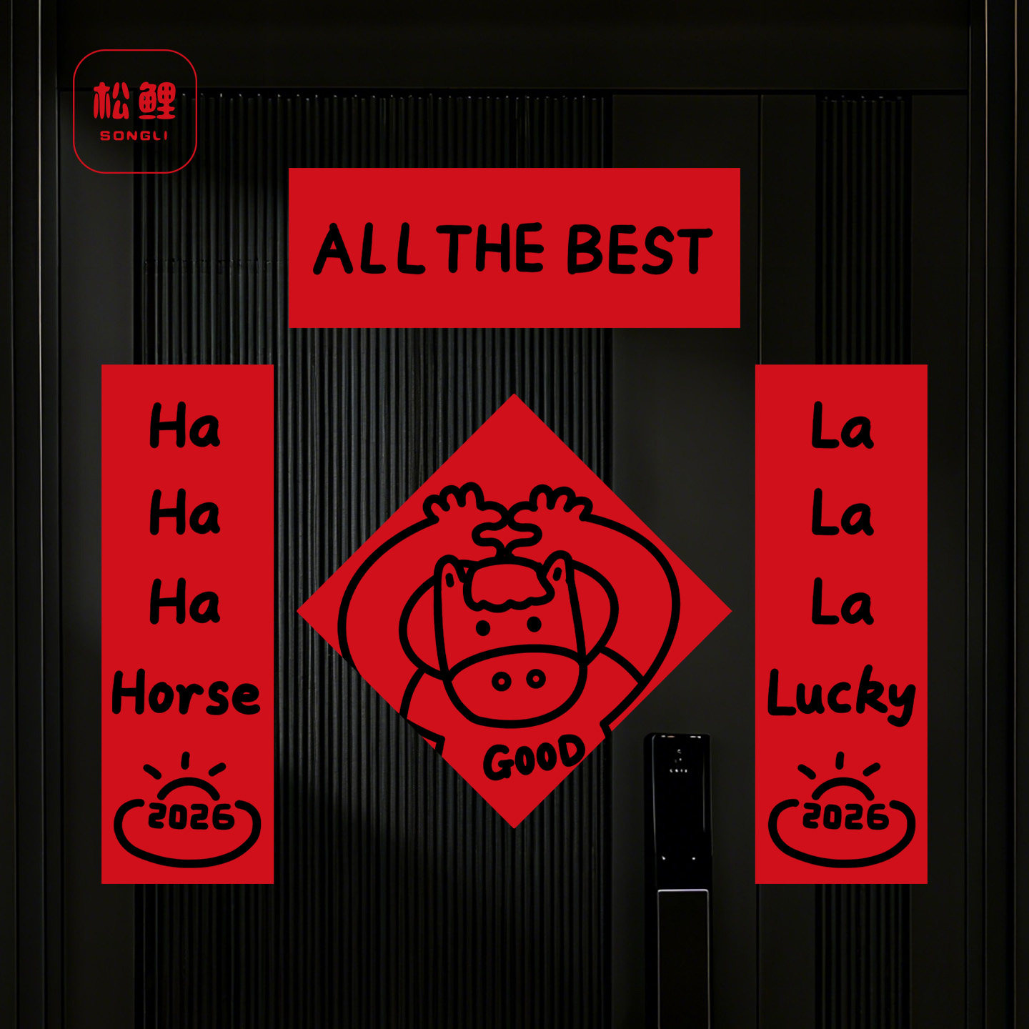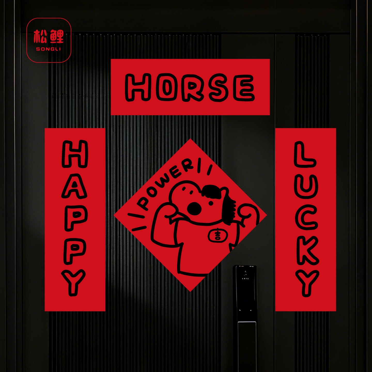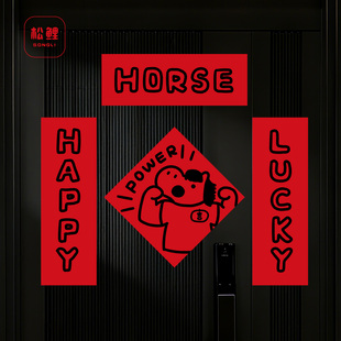 马年新年2026原创对联春节福字门贴装 饰布置窗贴卡通创意企业定制
