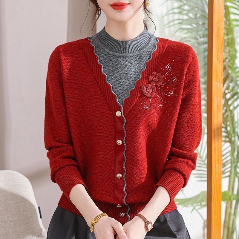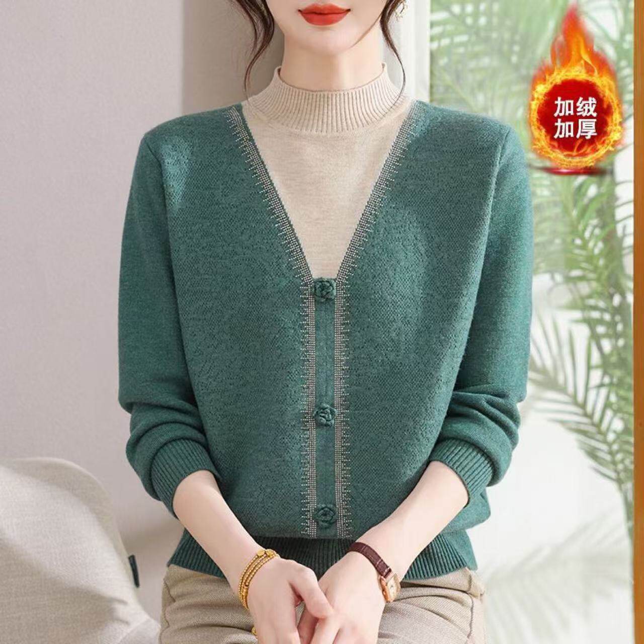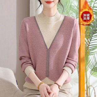 上衣羊毛衫 2025新款 百搭冬季 时尚 洋气打底 毛衣女加绒假两件针织衫