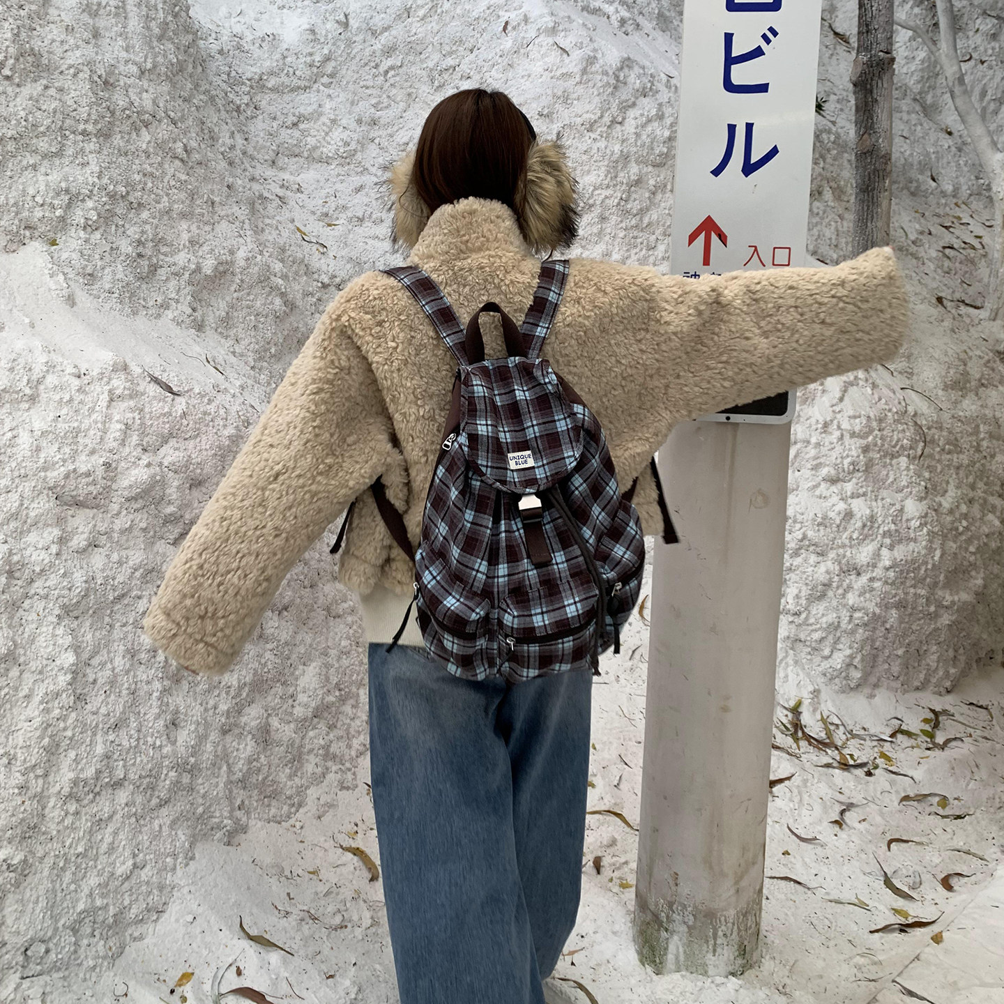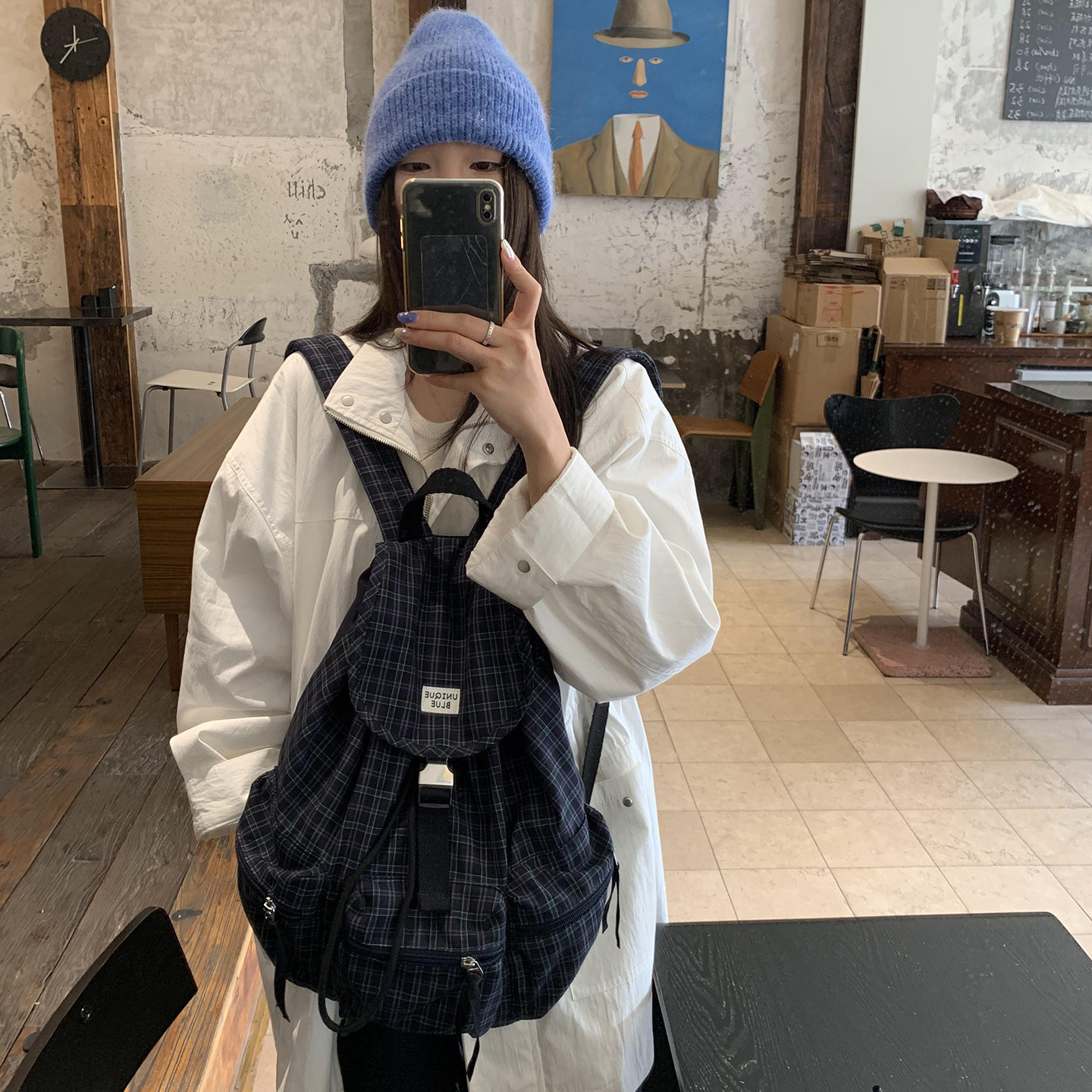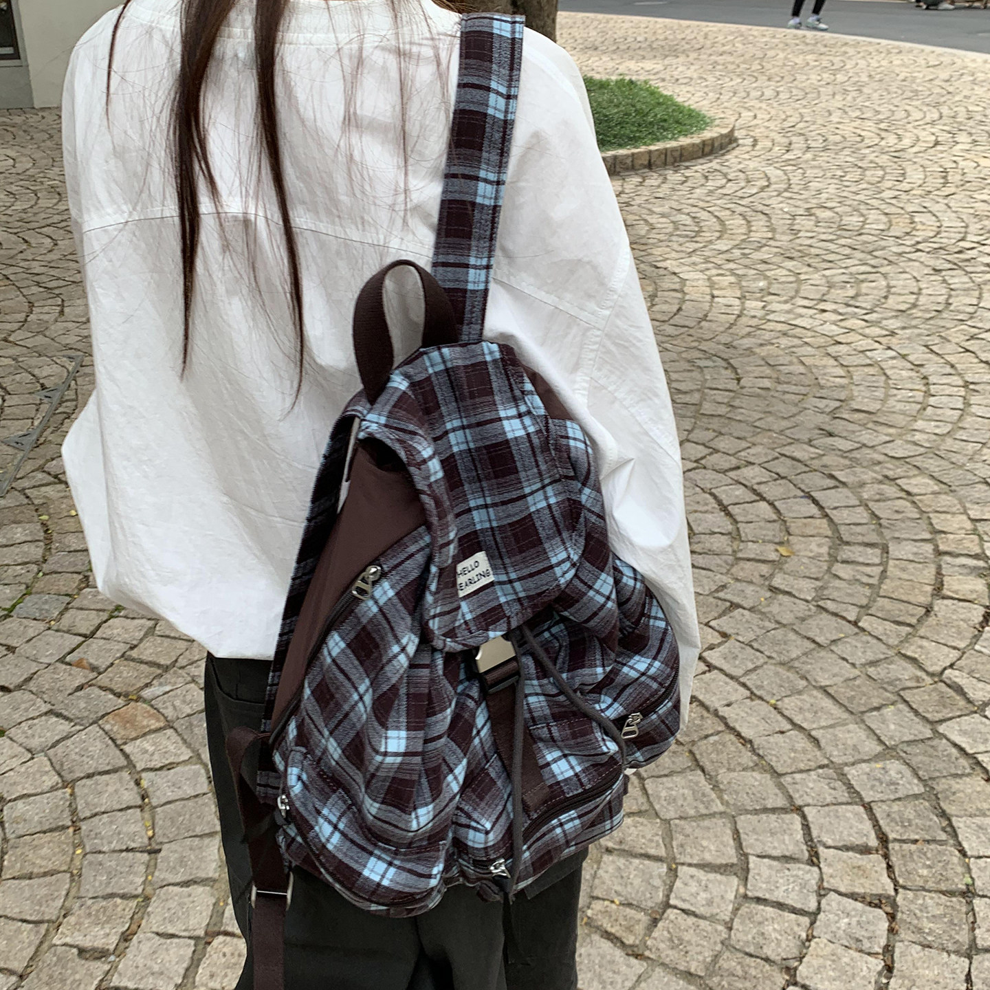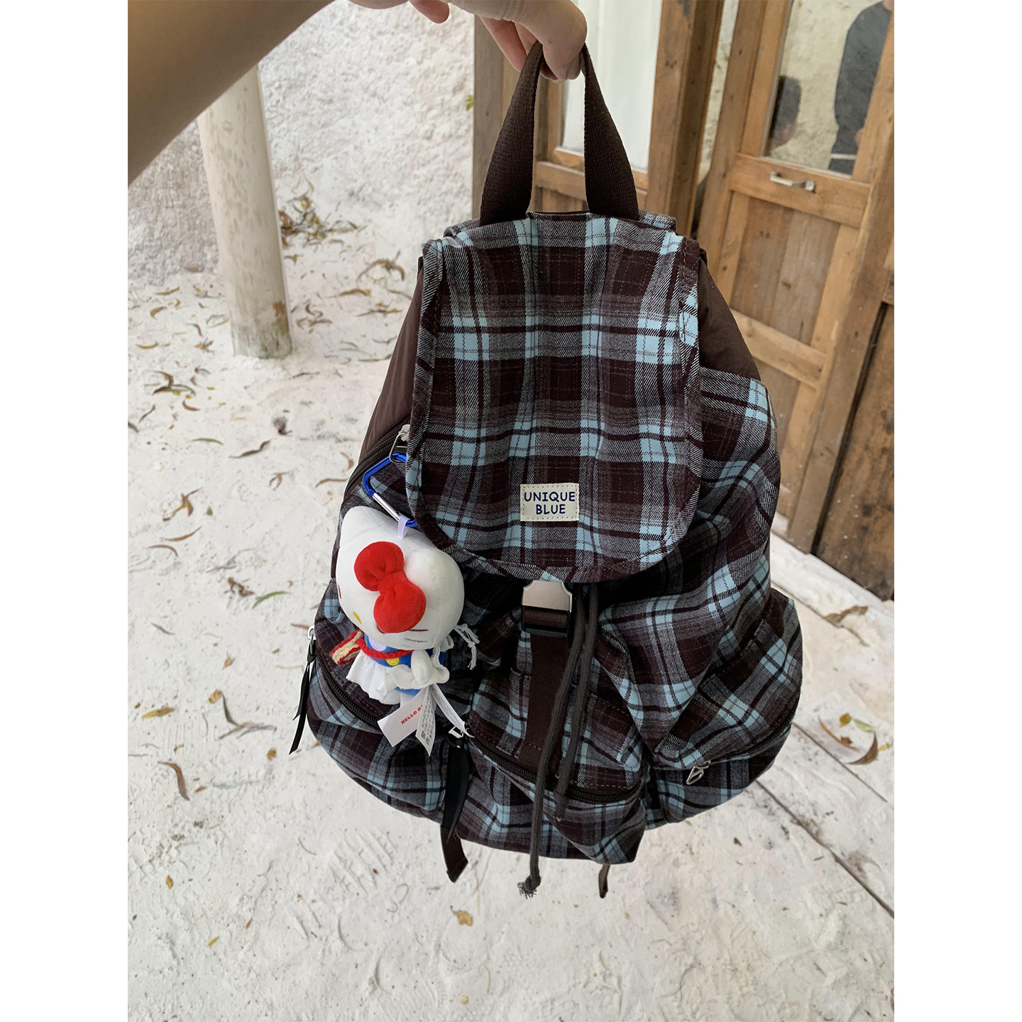 Unique 格子双肩包复古格子休闲大学生书包25秋冬轻便大容量 blue