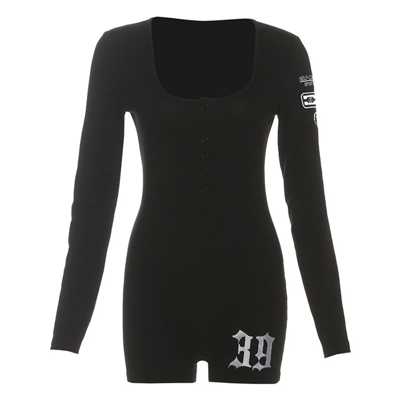 美式 修身 辣妹潮酷印花长袖 女 收腰显瘦连体衣秋 连体短裤 怪诞女孩