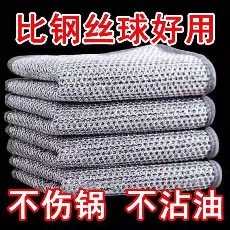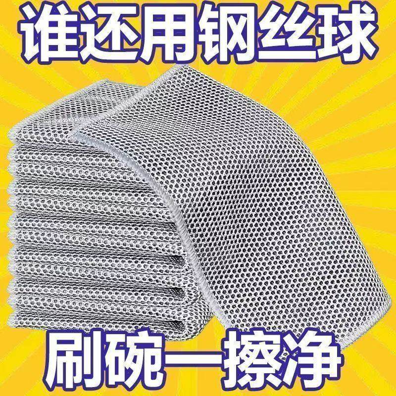 10条钢丝洗碗布不沾油厨房专用双层加厚超强清洁大号网格抹布