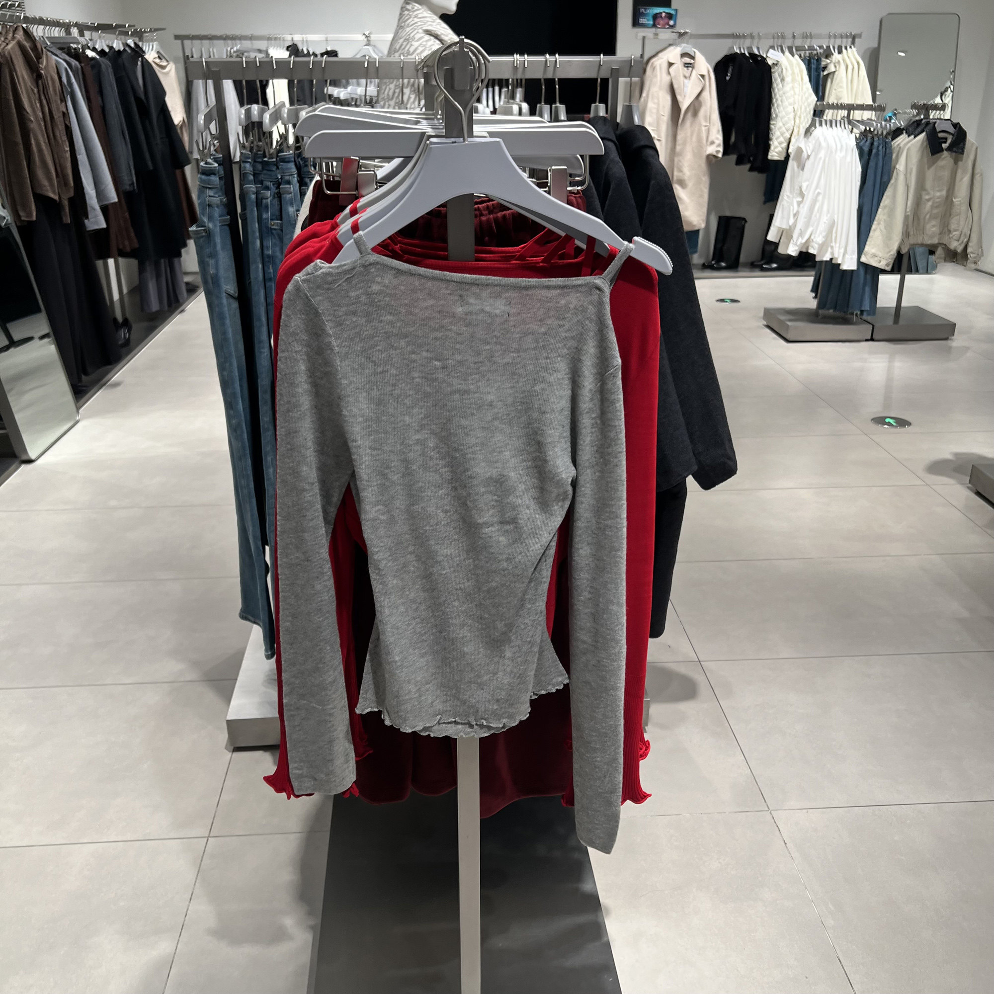 2025冬季 针织衫 女装 短款 UWG950248 魅力荷叶边吊带修身 UR国内代购