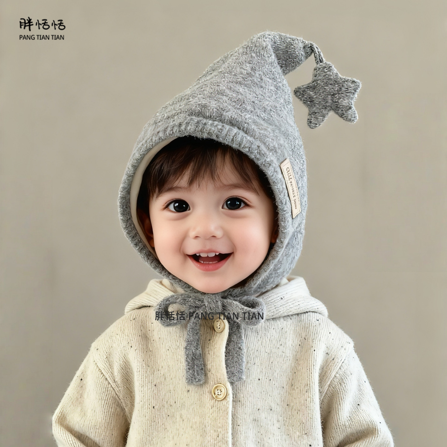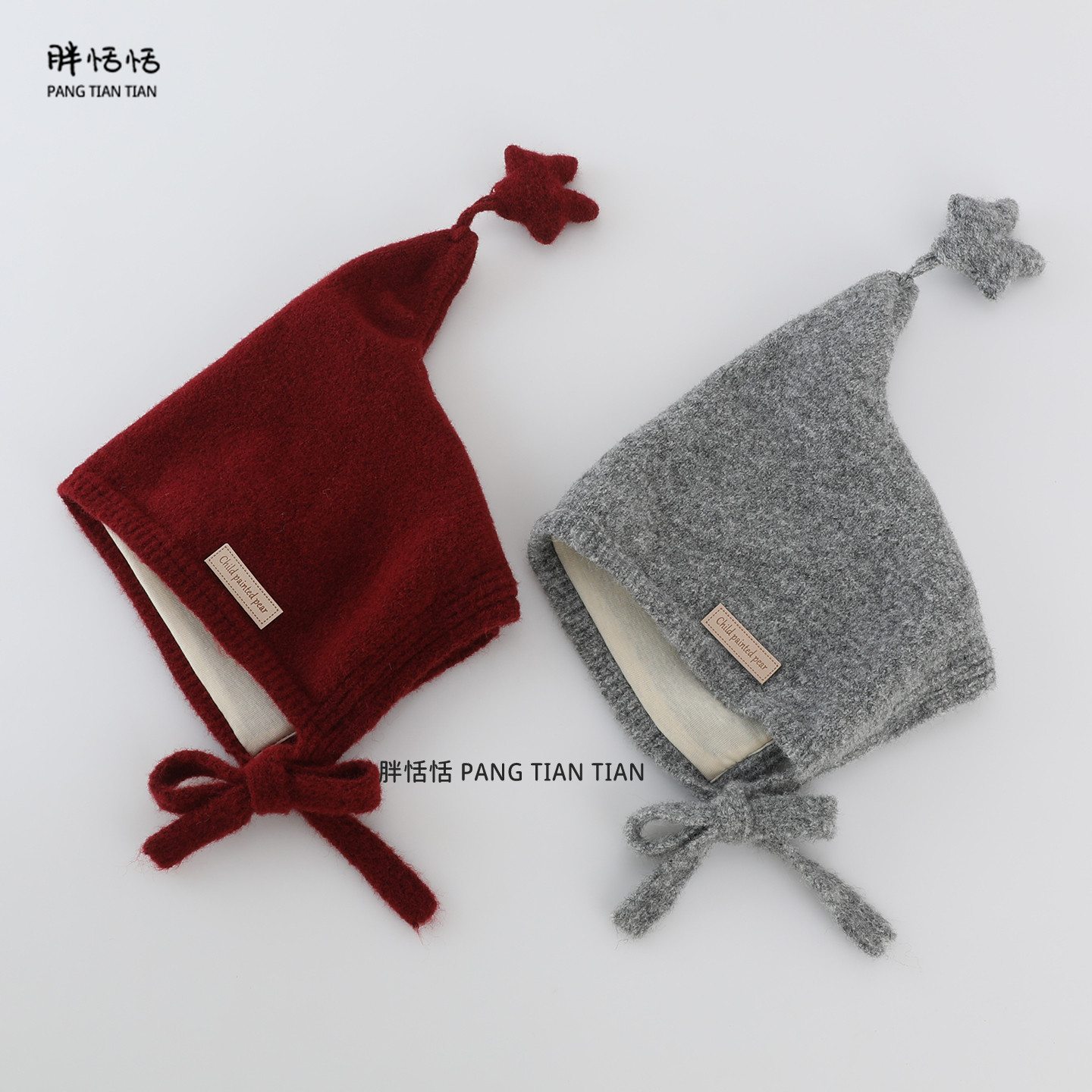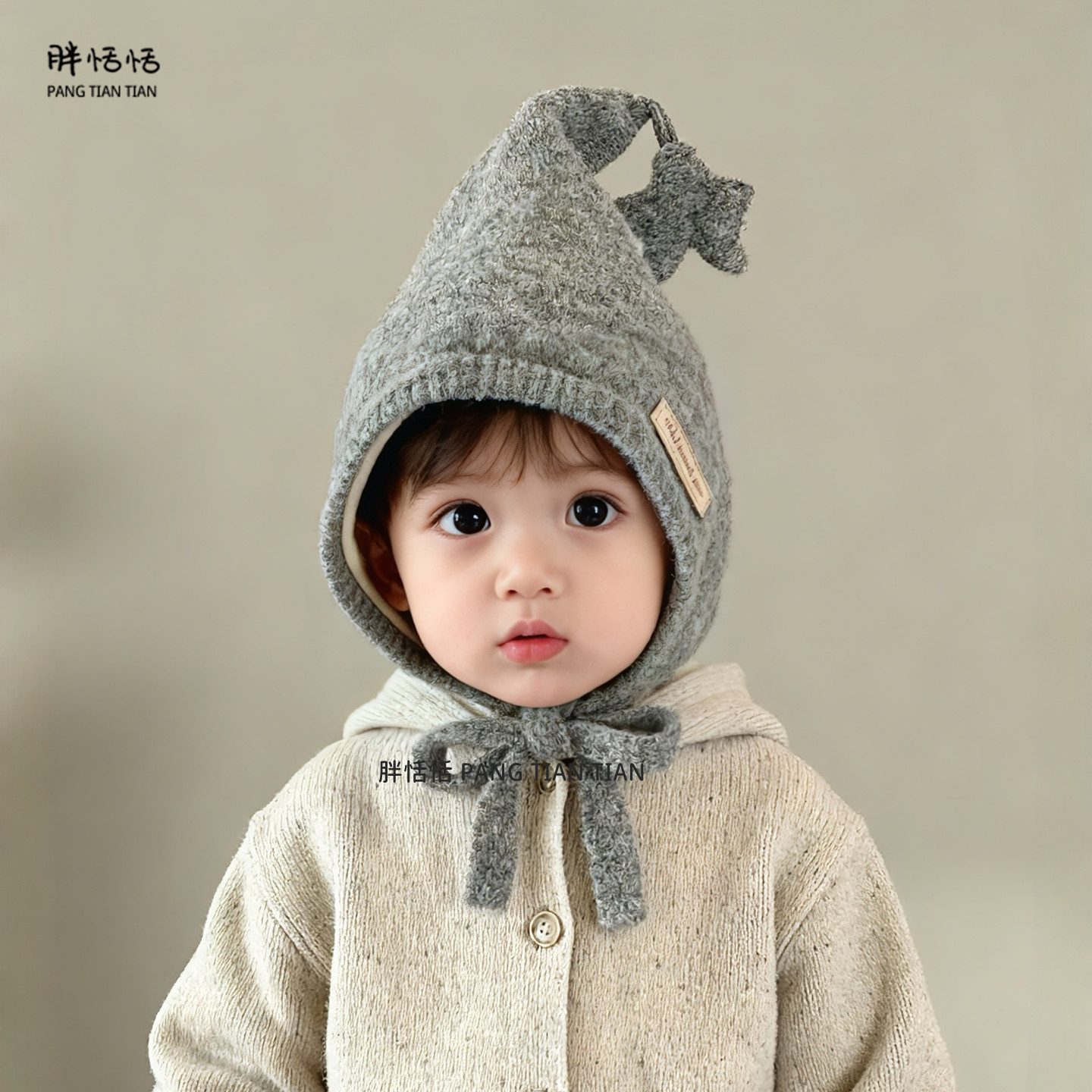 三福可爱熊熊西瓜帽保暖针织毛线帽猫耳毛绒帽子冬2025新款 848685