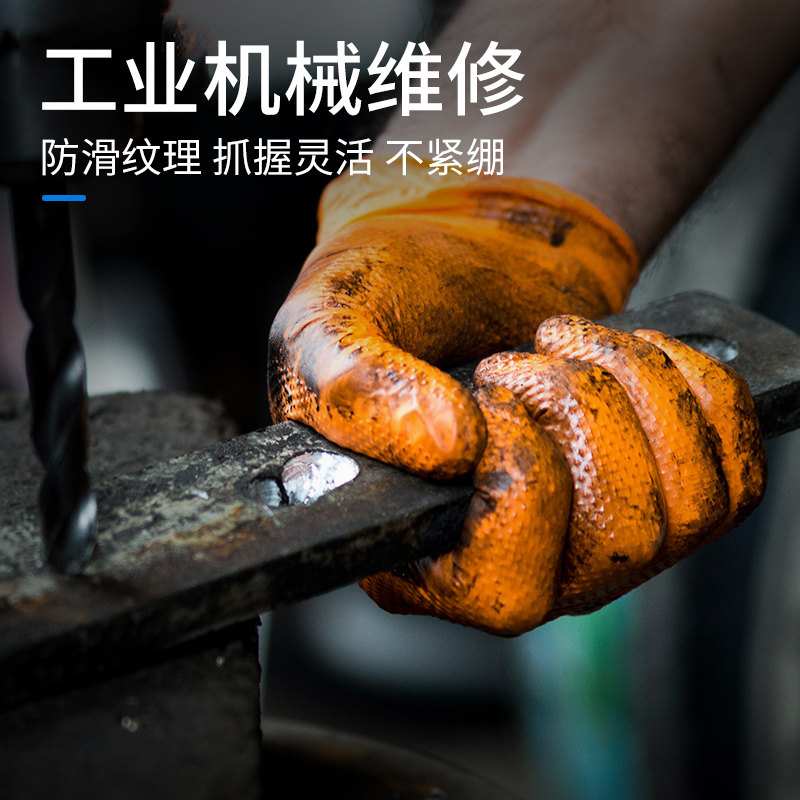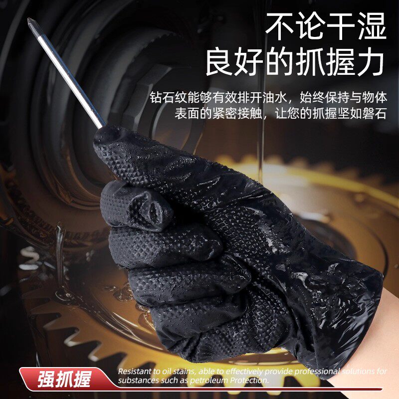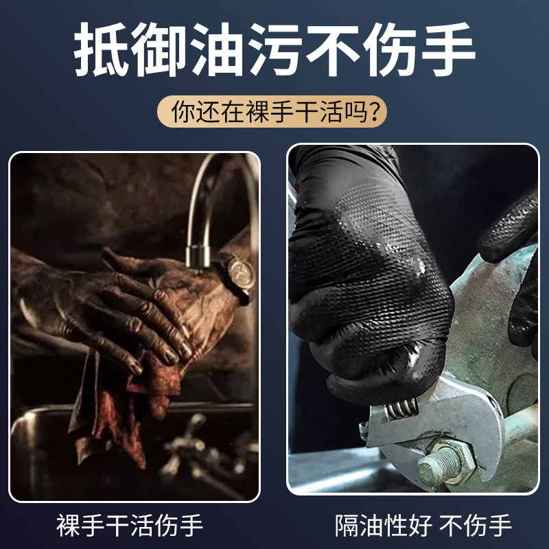 维修专用手套一次性汽修工业丁腈手套防滑防机油砖石纹加厚耐磨黑
