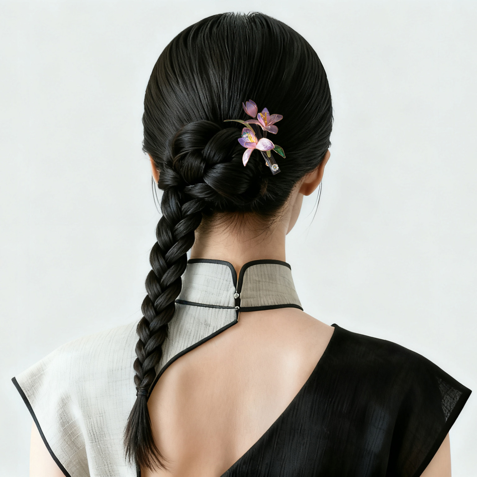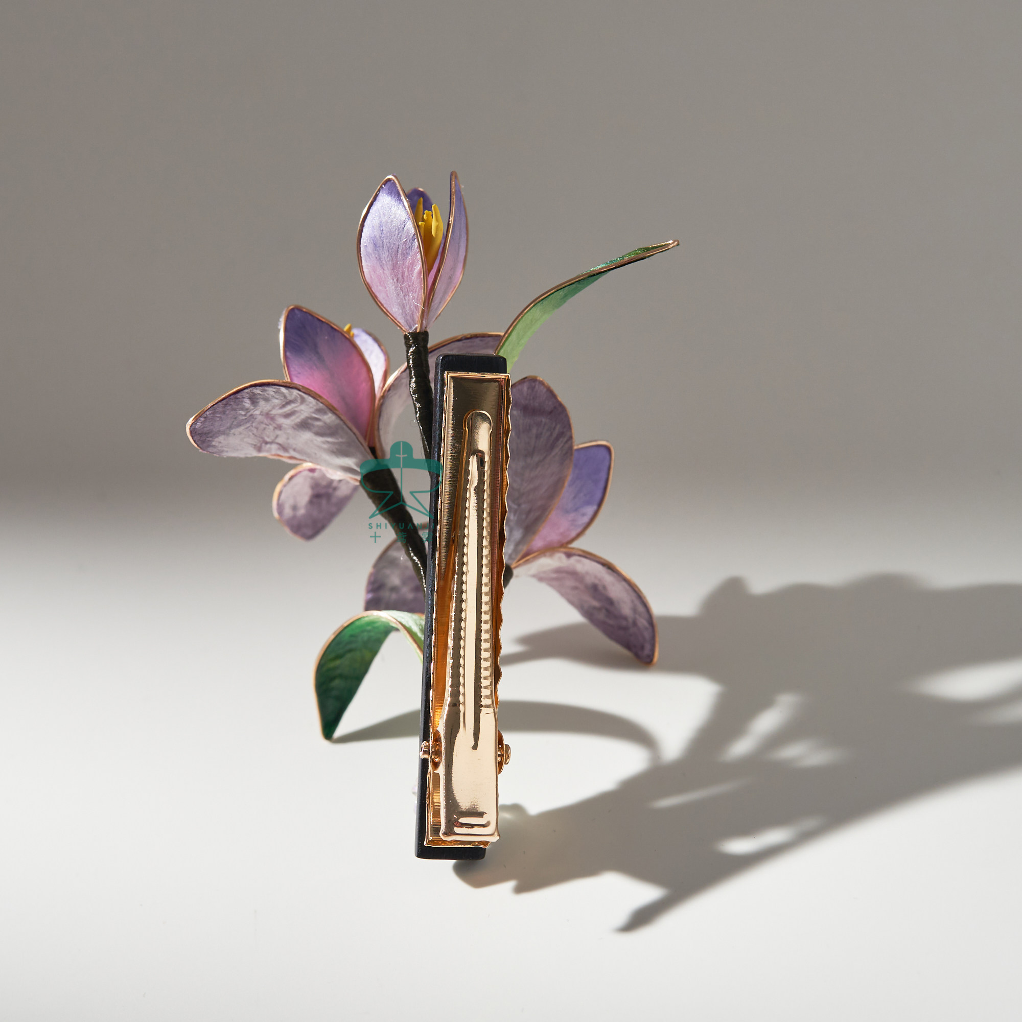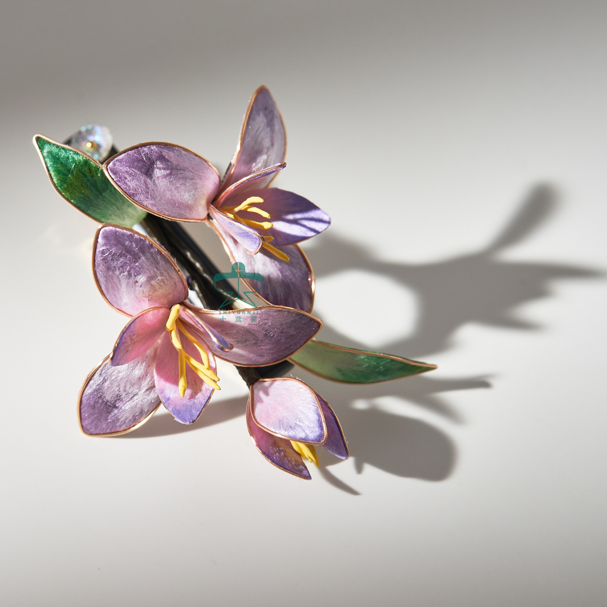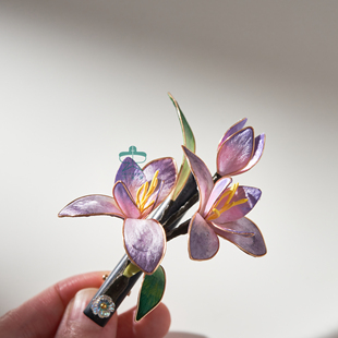 非遗绒花原创新中式 发夹边夹黑檀木紫兰花中国风古典汉服旗袍发饰
