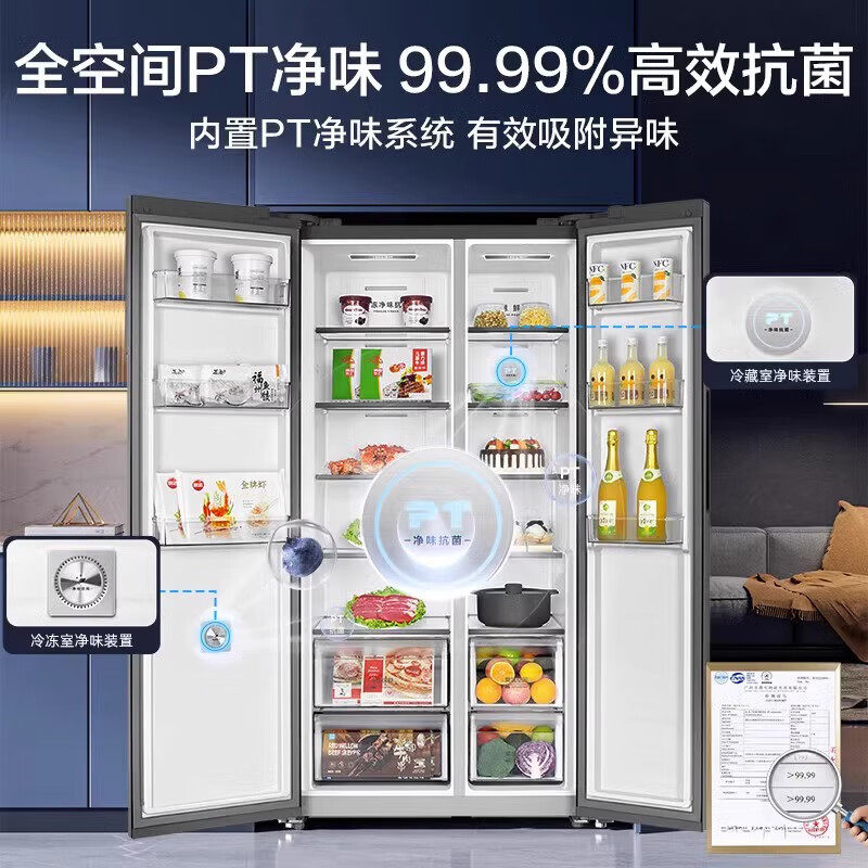 Midea 552WKGPZM BCD 风冷无霜大冷冻对开玻璃门变频冰箱 美