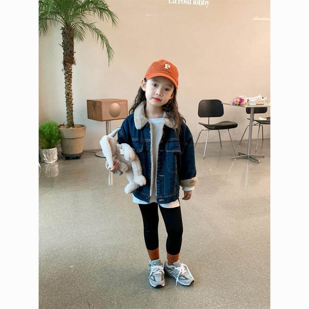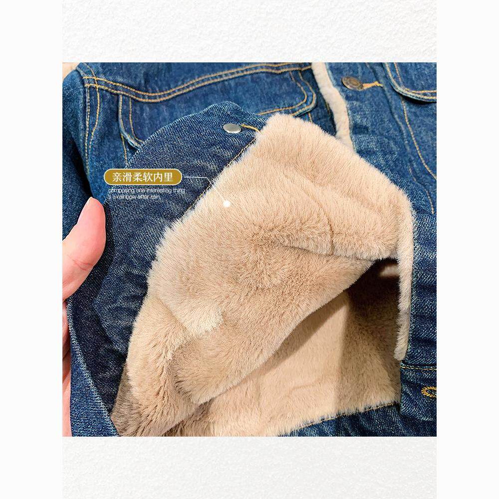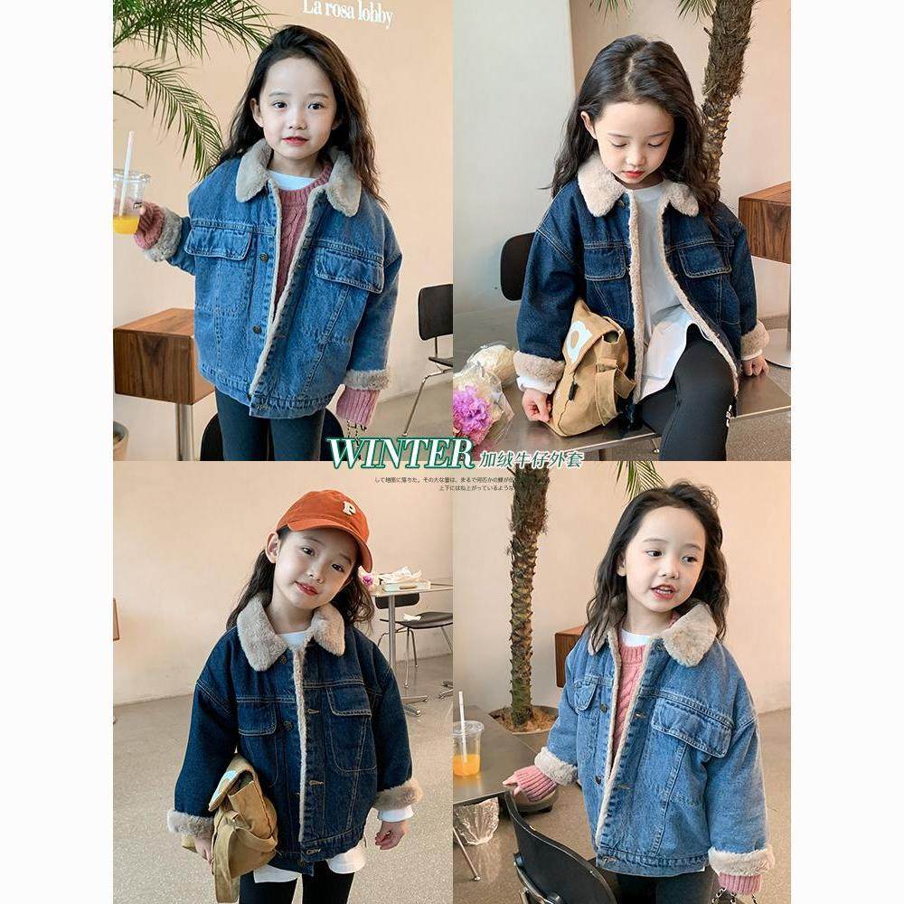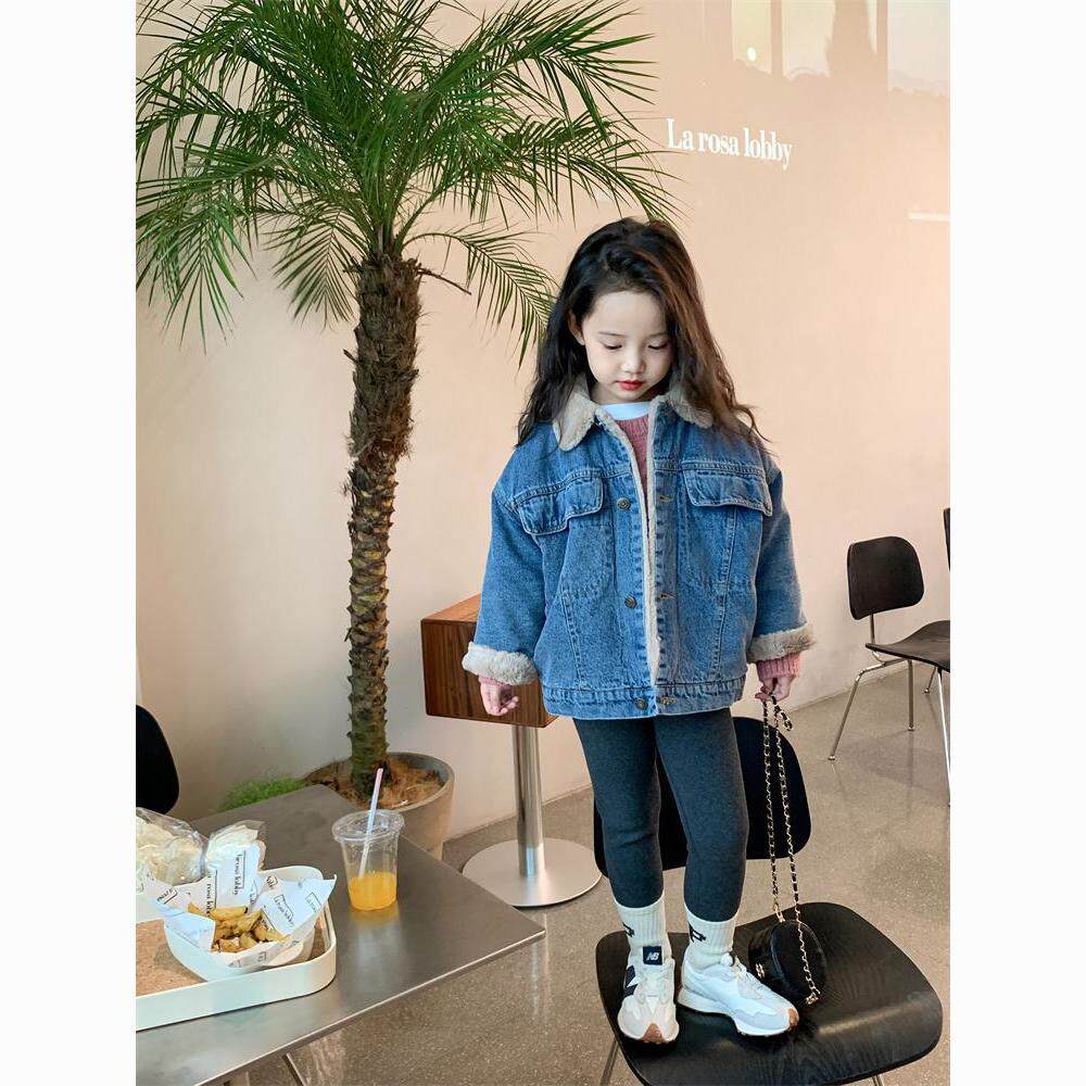洋气儿童加厚网红牛仔衣女孩冬季 女童牛仔加绒外套秋冬装 2025新款