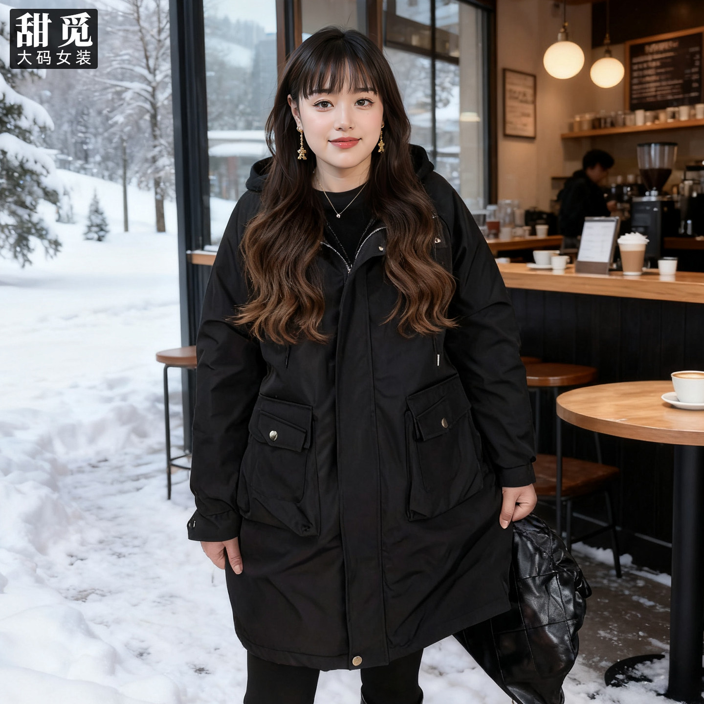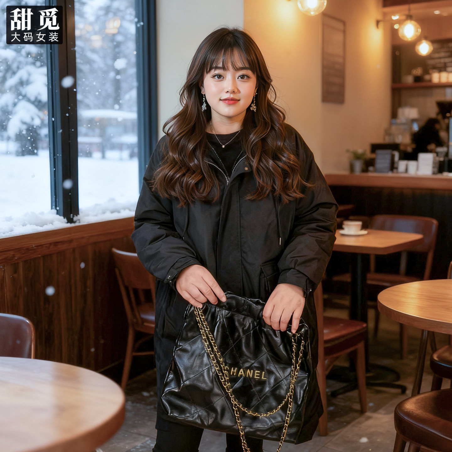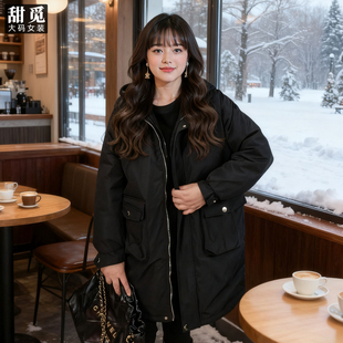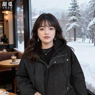 工装 复古夹棉加厚棉服女秋冬新款 派克服外套潮 胖mm美式 300斤大码