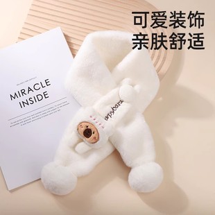 交叉可爱 百搭护颈小围脖仿獭兔毛毛绒领子2025新款 围巾女冬季 韩版