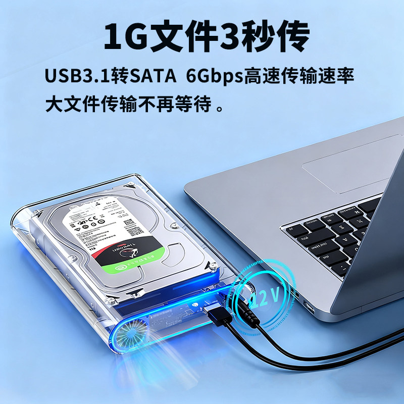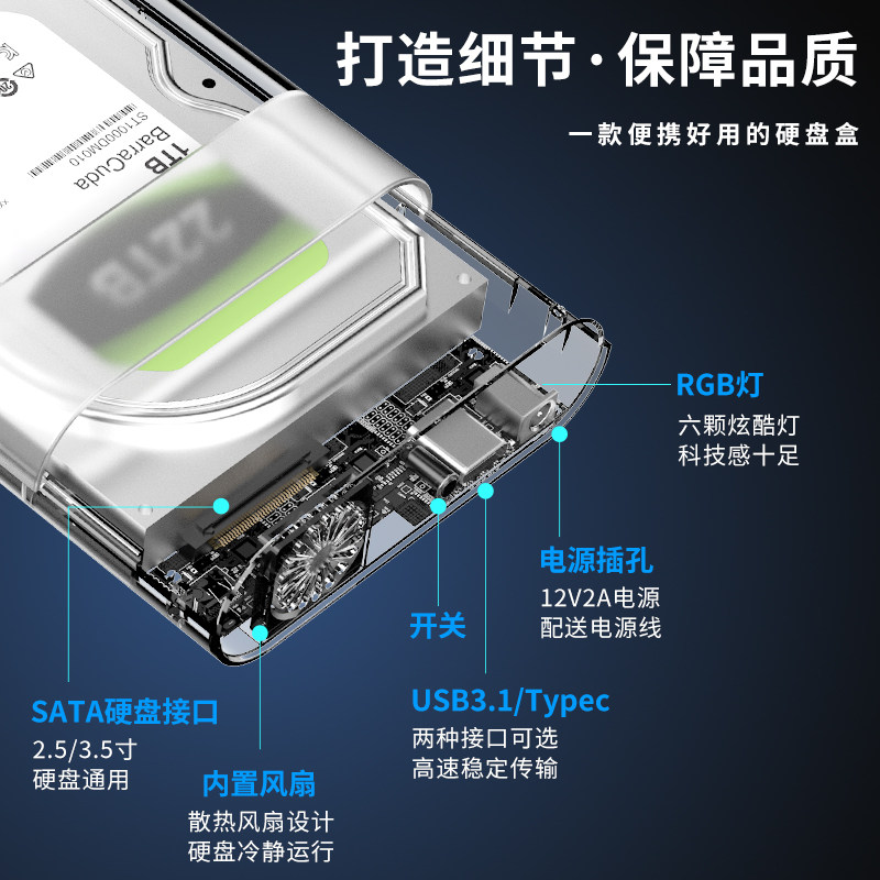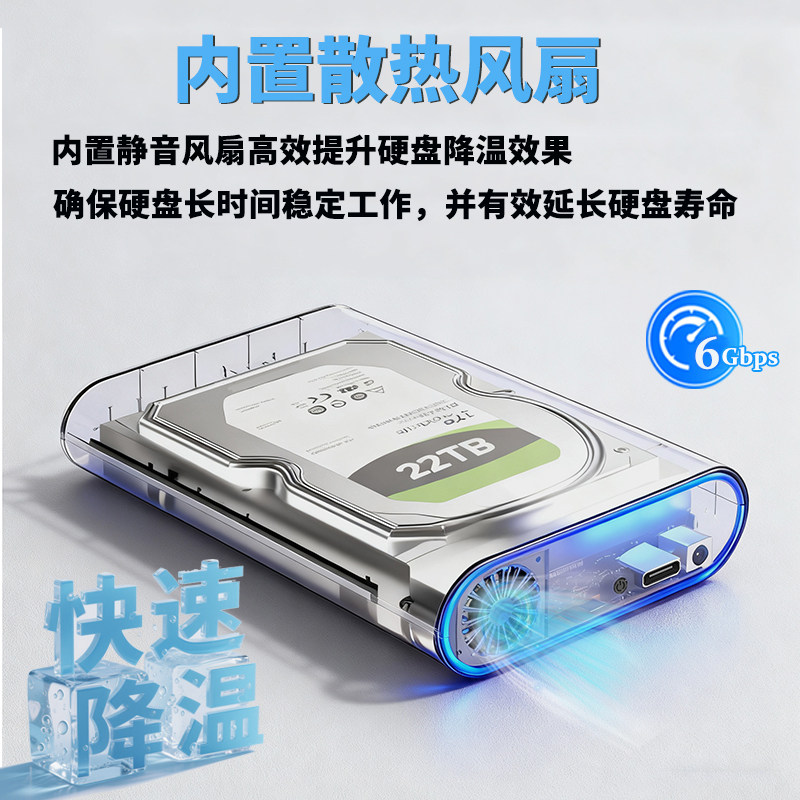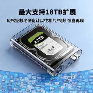 华顾3.5寸透明硬盘盒SATA转USB3.1机械固态硬盘外接读取内置风扇