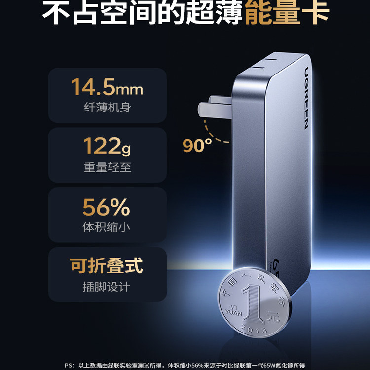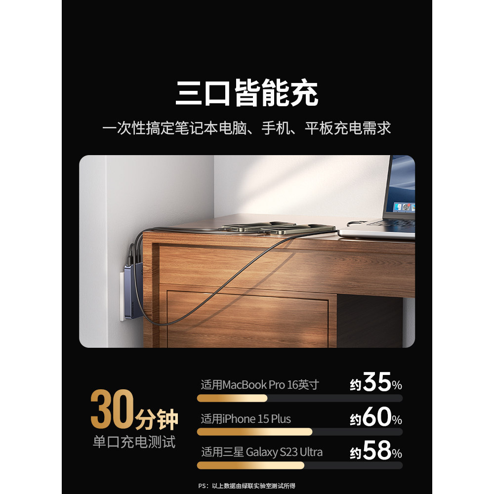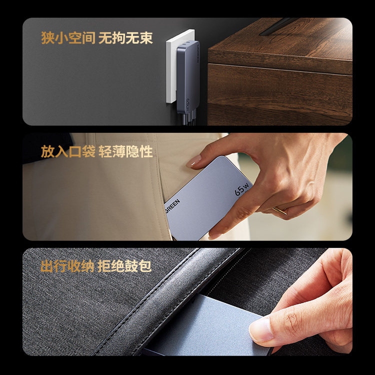 绿联65W氮化镓Pro超薄充电器PD快充头适用苹果iPhone17小米华为手机笔记本电脑多口便携卡片迷你15816 X753