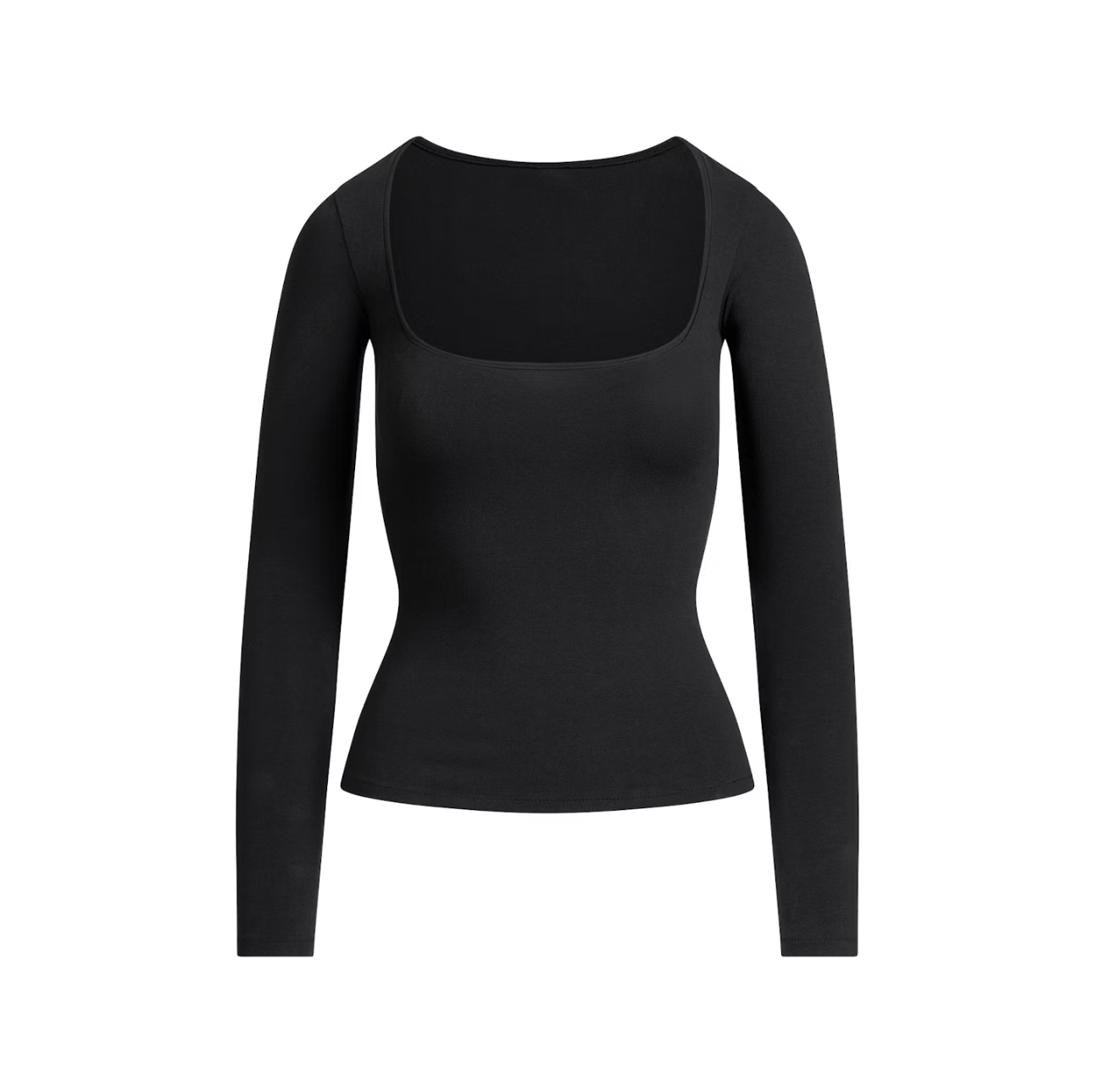 COTTON 打底U领修身 JERSEY 长袖 家居运动T恤女 卡戴珊同款 SKIMS