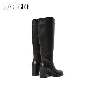 牛皮显瘦V口7cm粗高跟骑士靴字长靴女 新款 章若楠同款 真美诗冬季
