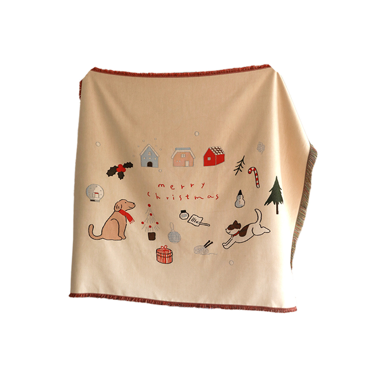 花时间生活原创圣诞节日礼物毯挂毯针织毯子盖毯装 饰卡通小狗单人