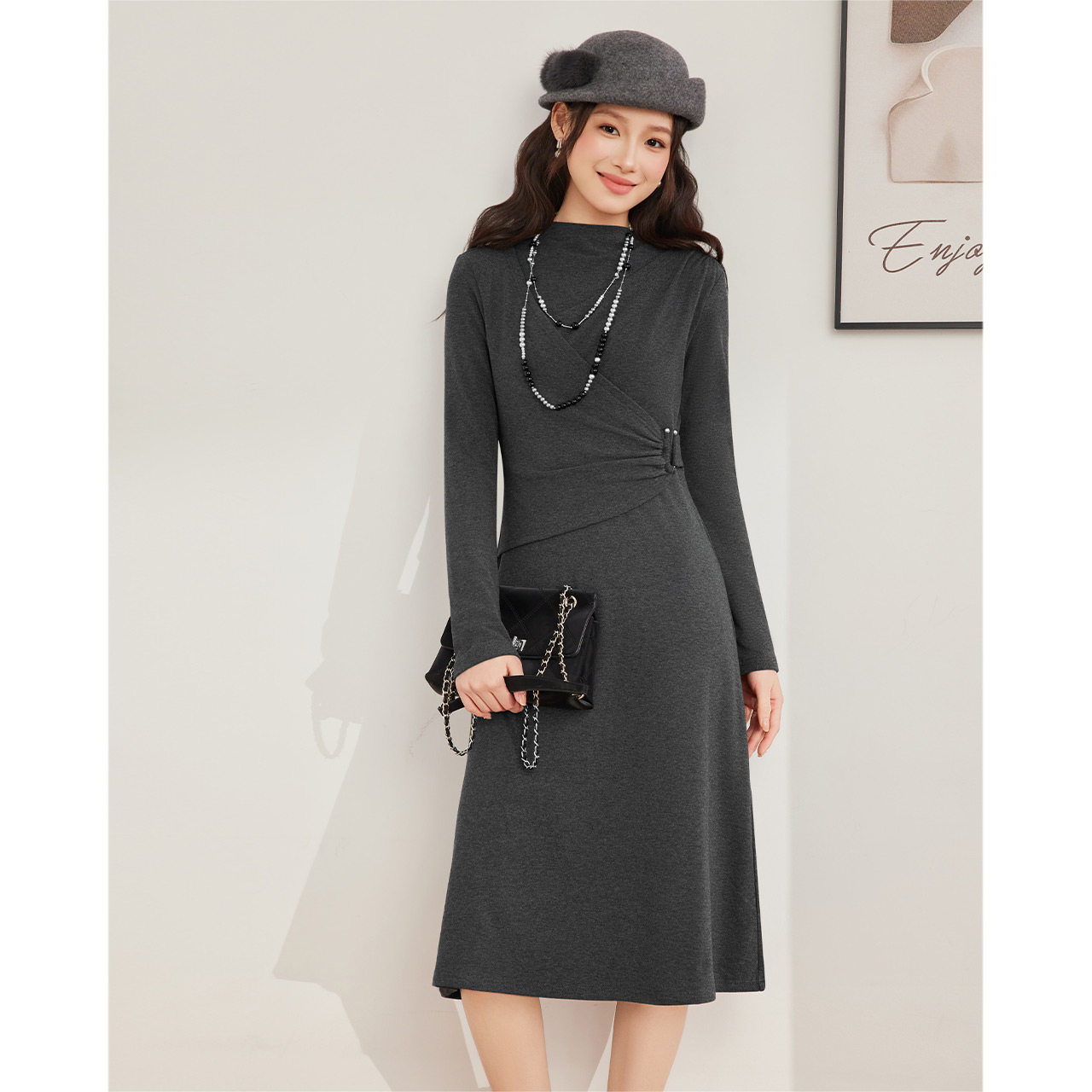 MULVAN挂脖针织连衣裙女春秋新款 气质内搭打底长裙 设计感修身