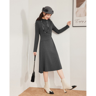 珂莱蒂尔2025秋新羊毛显瘦A字肌理感针织连衣裙 星光针织
