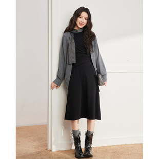 假两件收腰百褶羊毛针织连衣裙 珂莱蒂尔2025冬新款 星光针织