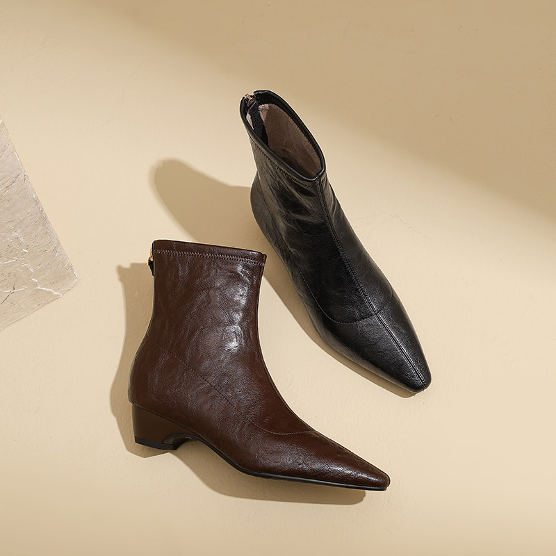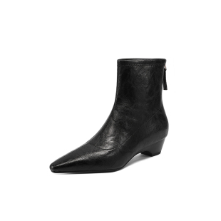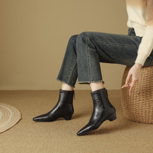 AMEINOR秋冬新款 简约气质短靴女2025方头舒适中粗跟显瘦加绒靴子