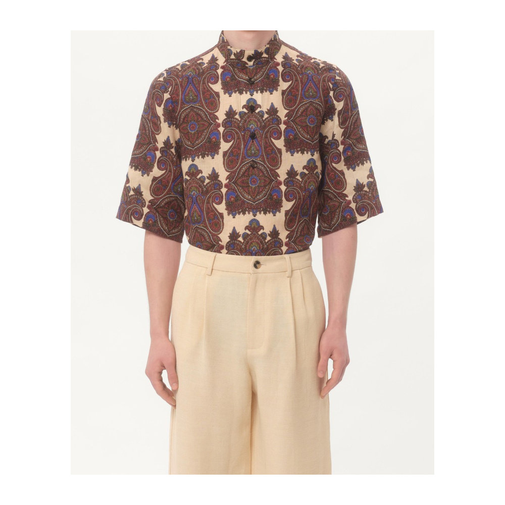男士 棕色短袖 衬衫 SS2025 亚麻 VAAF05ANPRBU VALENTINO