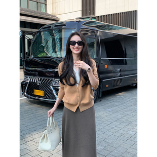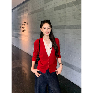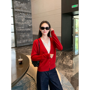 女100%羊毛薄款 Maven 撞色V领假两件针织开衫 轻奢俏感 小外套 Lin