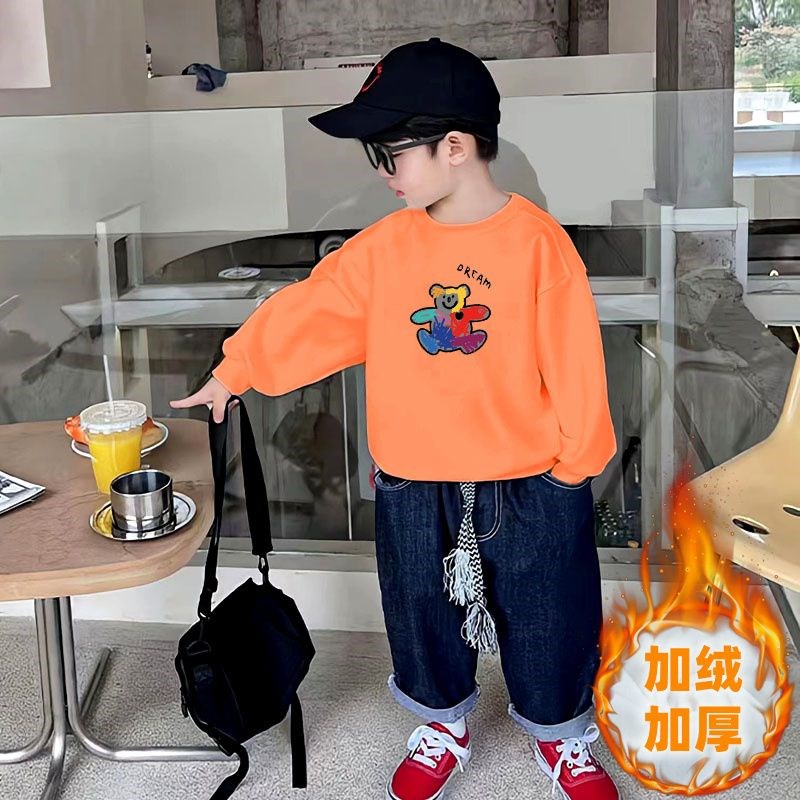 中小男童卫衣2024新款 男女宝宝上衣 秋冬加绒加厚卡通卫衣儿童长袖